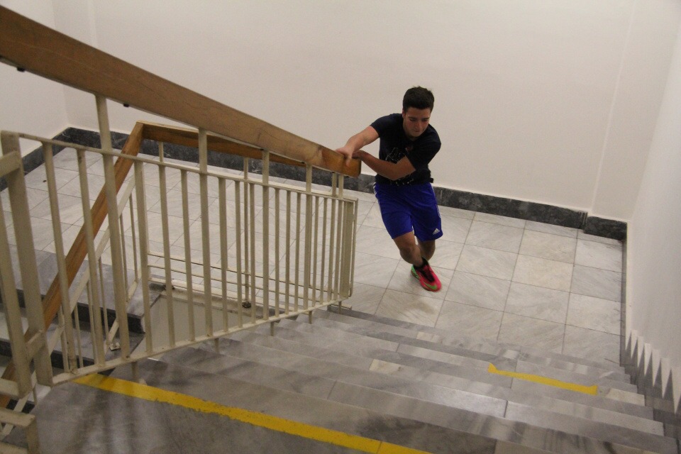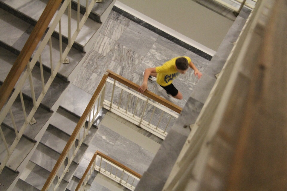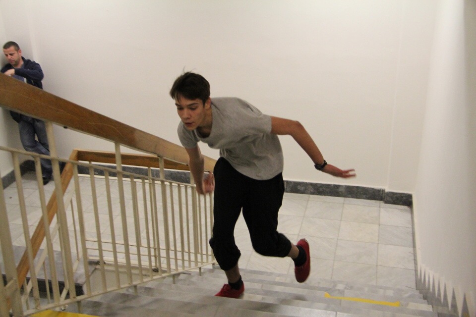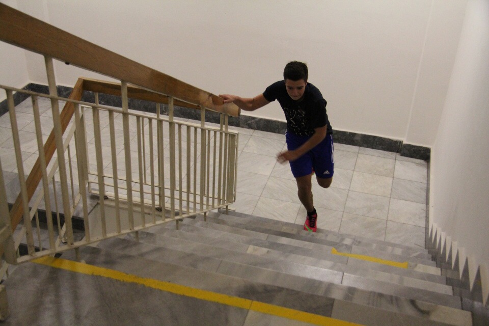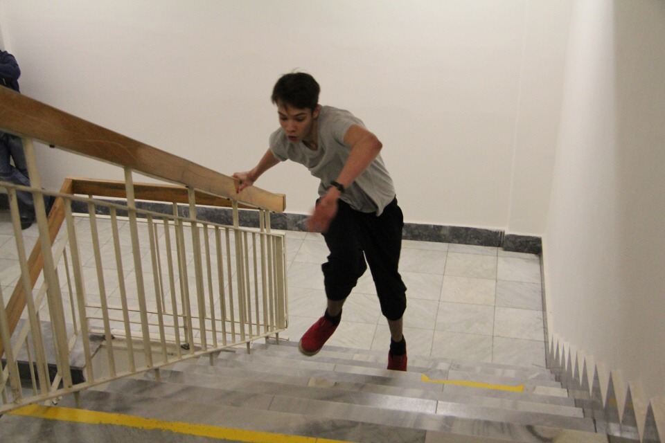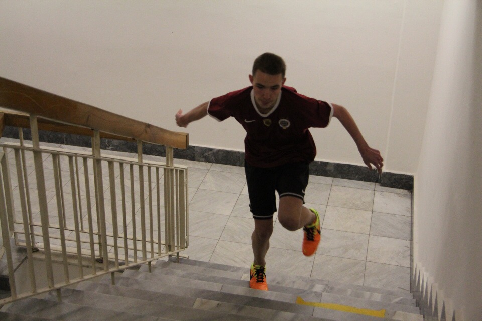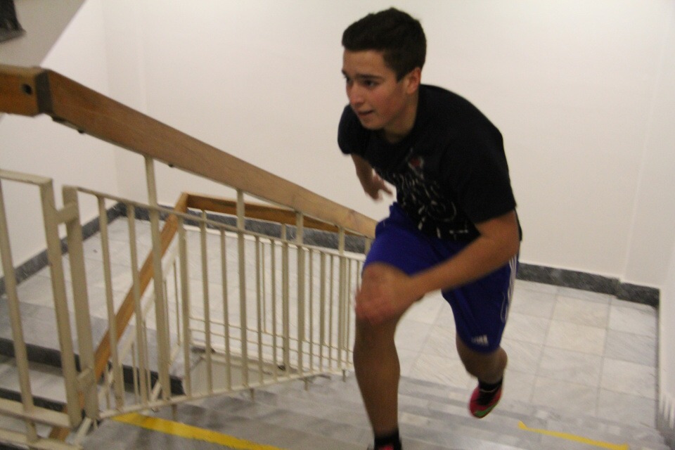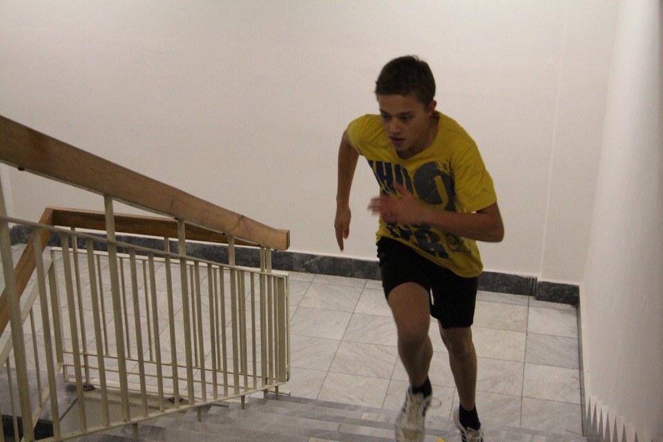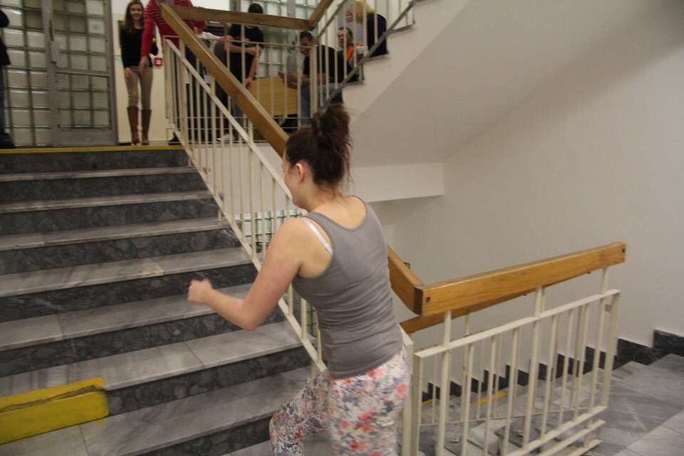 Běh do schodů /za HŠ soutěžilo 10 studentů /
