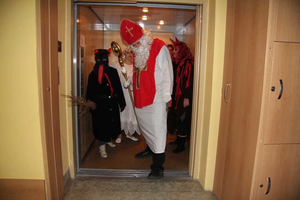 Po osmé hodině večer se zastavil Mikuláš s andělem a nezbednými čerty. Všichni jsme byli samozřejmě celý rok hodní, a proto jsme dostali nadílku. Někdo z nás však potřeboval trochu pohrozit metlou, ale i tak získal svou odměnu.