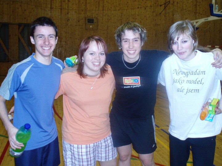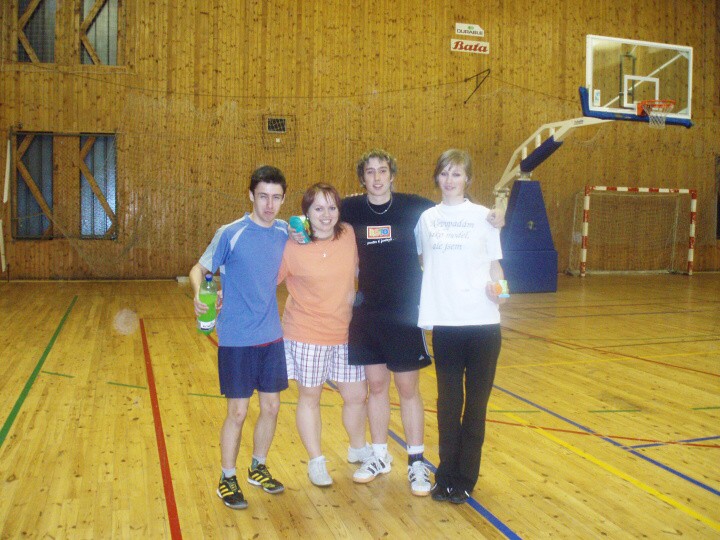 Robin a já jsme první zápas vyhráli. Což bylo fajn, aspoň jsme tam nejeli zbytečně. Když jsme tak pozorovali ostatní, moc nadšení už jsme nebyli, ale zůstali jsme optimističtí. Kuba a Zuzka také vyhráli, takže jsme zatím postoupili všichni. V dalším zápase, kde už nás všech bylo o 8 dvojic míň, jsme opět vyhráli oba týmy. Pak jsme zůstali už jen 4 dvojice. Nakonec, jak jsme si ze začátku dělali srandu, že budeme hrát spolu, se to opravdu vyplnilo. Kuba a Zuzka nás porazili, ale hlavní bylo, že jsme se zúčastnili a že vyhrály Poděbrady 1.a 2. místo.