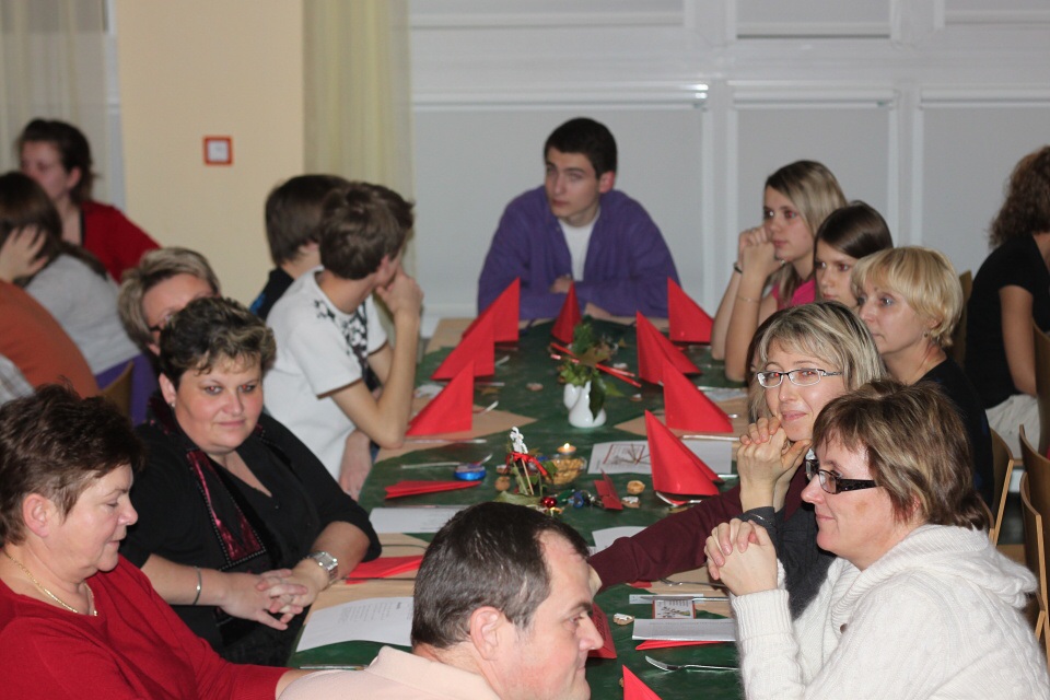 Se svými přáteli usedám k dlouhému vánočně ozdobenému stolu. Po chvíli následuje úvodní slovo a seznámení s programem celého večera.