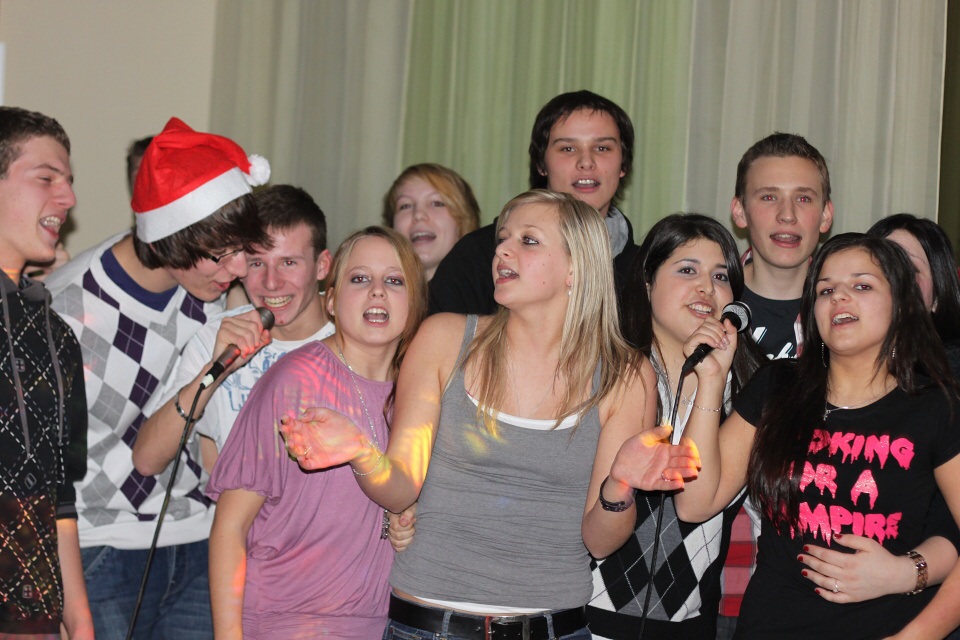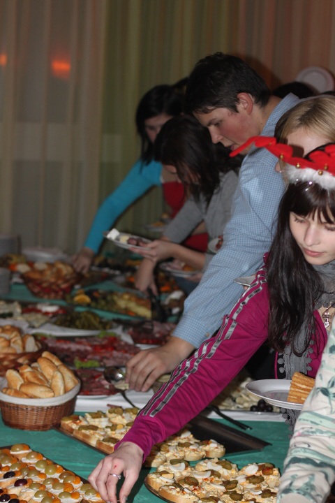 Je tu jedna z hlavních částí programu – samotný raut. Všichni se rozeběhnou ke stolům, které jsou plné cukroví, chlebíčků, salátů a dalších dobrot. Po více než půlhodinovém hodování přichází poslední část večera. Karaoke!