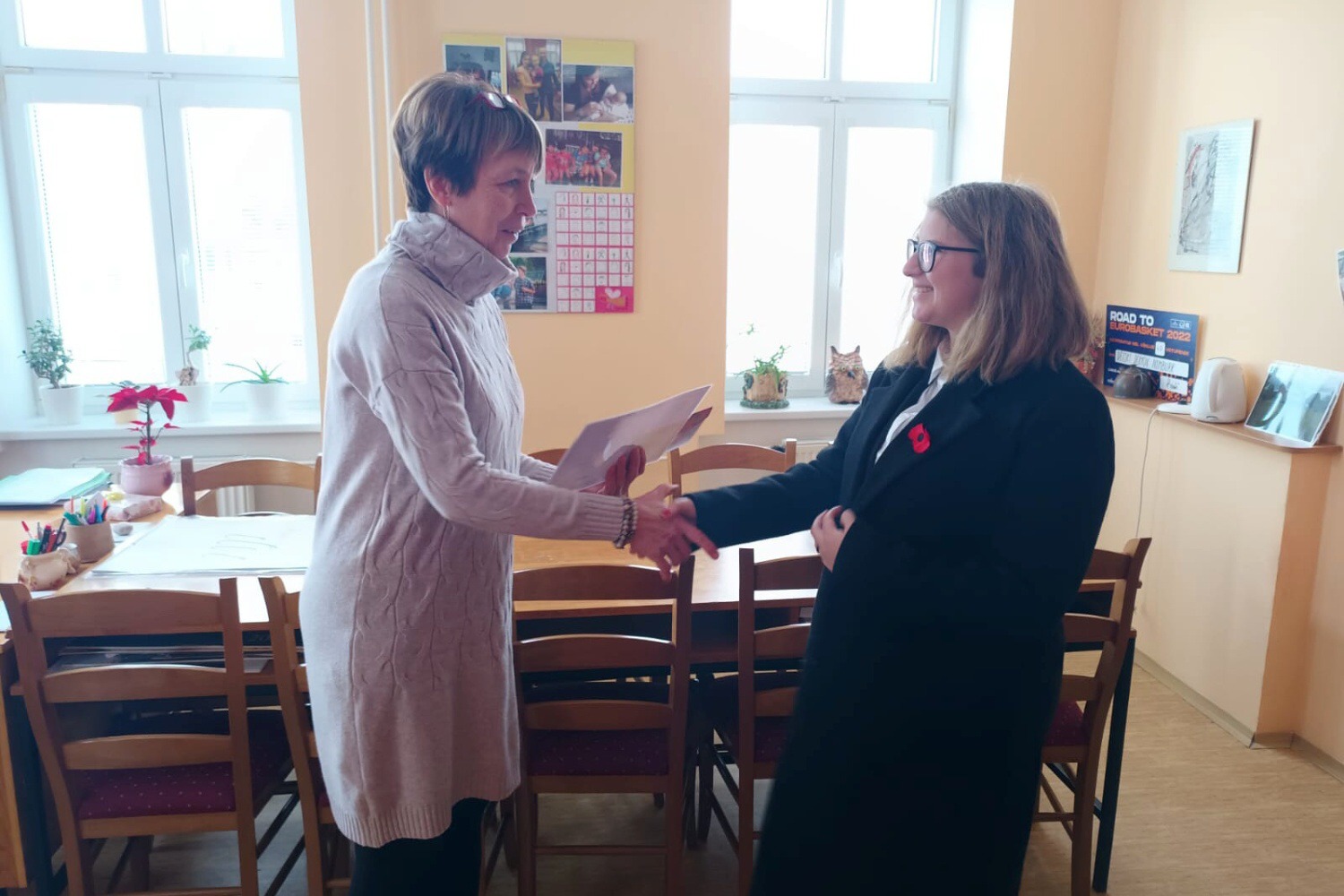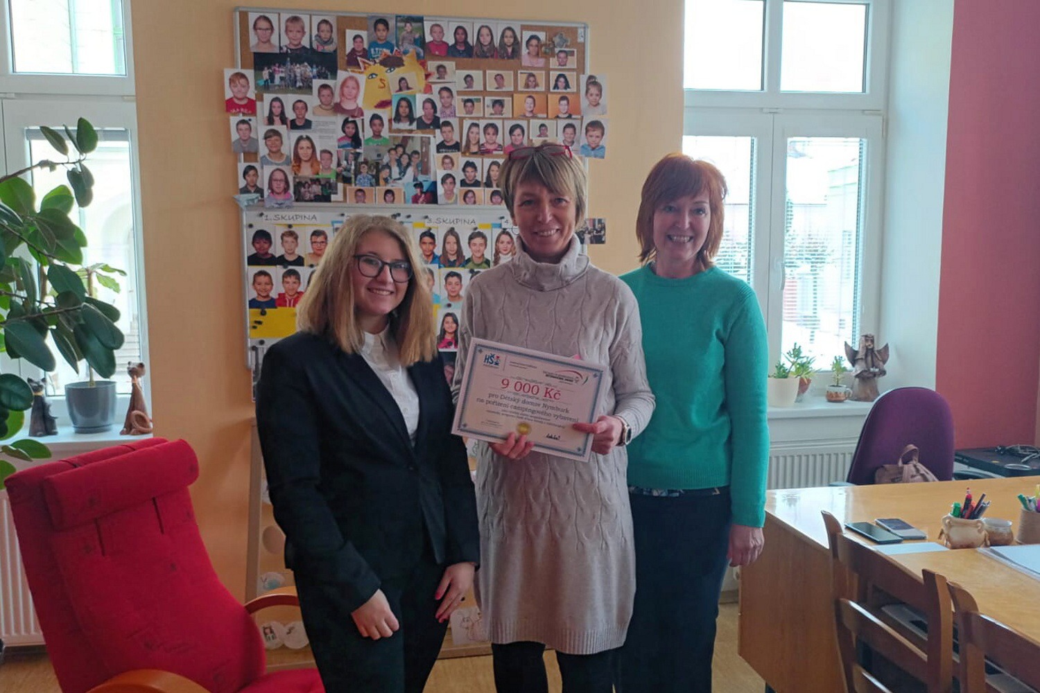 Naše ambice ale byly o něco vyšší, a tak jsme se rozhodli pokračovat. Na Dni otevřených dveří jsme proto dali uchazečům o naši školu možnost také přispět. Celý výtěžek 9 000 Kč jsme pak osobně jeli předat ředitelce dětského domova paní Klímové.