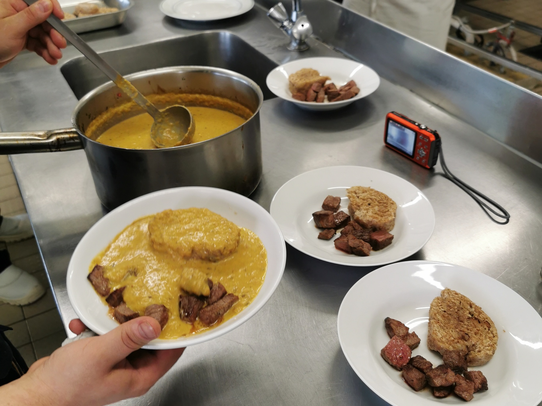 Naši studenti zjistili, co je to bouquet garni, který potřebovali na klasický francouzský pokrm Blanquette de veau, což je telecí ragú v bílé omáčce. A všichni si budou pamatovat, že Tarte Tatin se musí péct obráceně, jablky vespod. Zkaramelizovaná jablka chutnají báječně! Francouzi překonali nástrahy přípravy knedlíků a zvládli je prý na jedničku. A štrúdl byl prý délicieux!