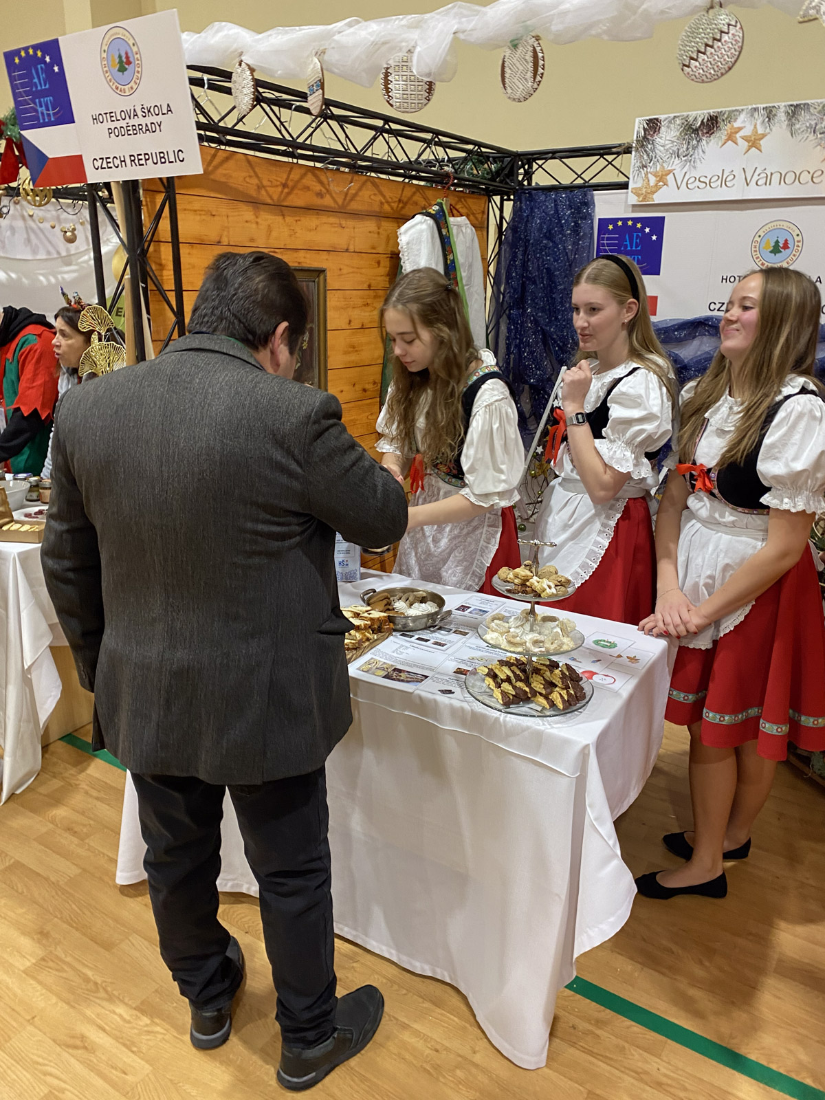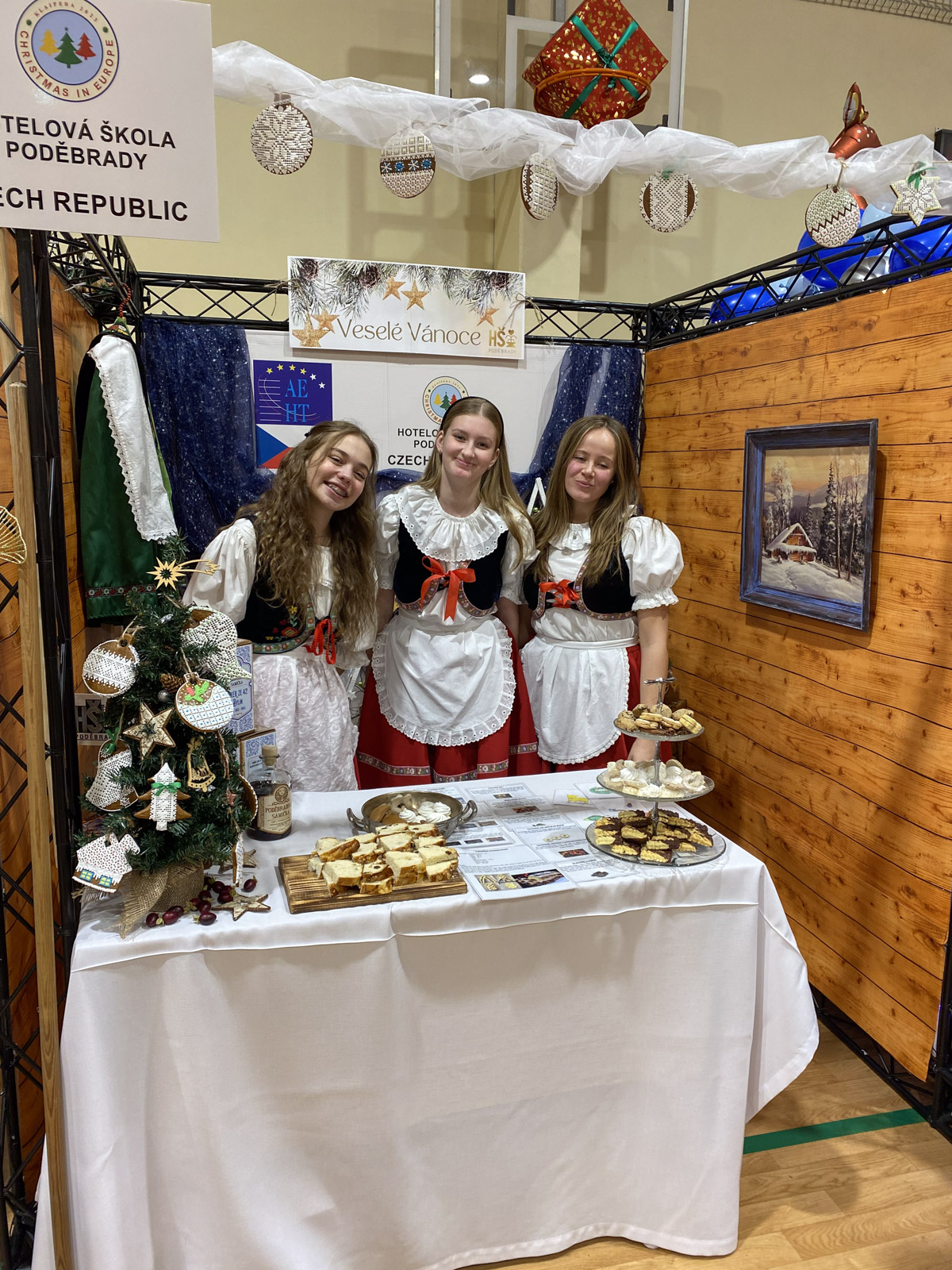 Po příjezdu do Klaipedy jsme byli ubytováni na domově mládeže školy Klaipedos Turizmo Mokykla, kde na nás čekal nabitý program plný výstav, exkurzí a soutěží. Jako první aktivitu jsme připravili a vyzdobili stánek, kde jsme později seznamovali návštěvníky odkud pocházíme, jakou školu studujeme a s českými Vánocemi a zvyky. Nabízeli jsme zde různé druhy cukroví, vánočku a také likér Poděbradská samička.