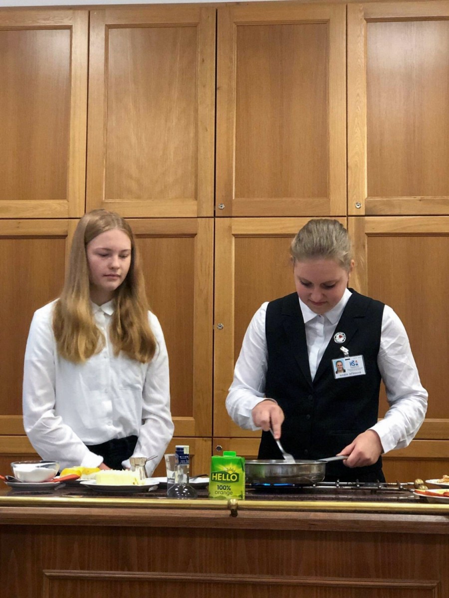 Ve čtvrtek 7. listopadu 2019 jsme se v rámci předmětu technika obsluhy a služeb rozhodli ukázat našim kolegům z Německa způsob přípravy palačinek před hostem flambováním. Flambovali jsme v koktejlu z pomerančové šťávy a meruňkovice.