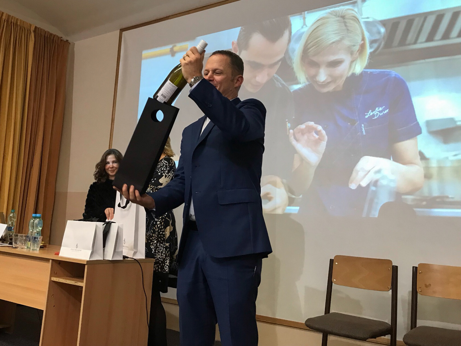 Přednáška byla zakončena tombolou, ve které studenti získali zajímavé ceny, například tříchodové menu pro dvě osoby do restaurace hotelu nebo archivní vína.