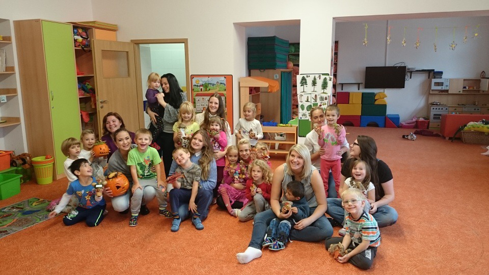 Hned při příchodu do školky jsme si s dětmi padly do oka. Po krátkém seznámení nás děti překvapily módní přehlídkou. Dále nás naučily jejich velmi oblíbenou hru jménem Padák. Podstata hry byla co nejrychleji si ve dvojici pod padákem vyměnit svá místa, což nás, paní učitelku Křivskou i děti hodně bavilo. Následovala tvořící hodinka, kdy jsme si spolu s dětmi vytvářely postavičky z brambor a přírodních materiálů a nechybělo také vyřezávání dýní. Abychom netrávily celý den ve školce, připravily jsme si pro děti hledání pokladu. I když nám počasí nepřálo, všichni z nalezeného pokladu měli obrovskou radost. Po návratu do školky nás čekalo milé překvapení v podobě dobrého oběda od paní kuchařky Jarušky. Jak už to ve školkách bývá, po obědě následuje zasloužilý odpočinek se čtením pohádky. Nečekaly jsme, že nás děti vyčerpají natolik, že jsme usnuly rychleji než ony.