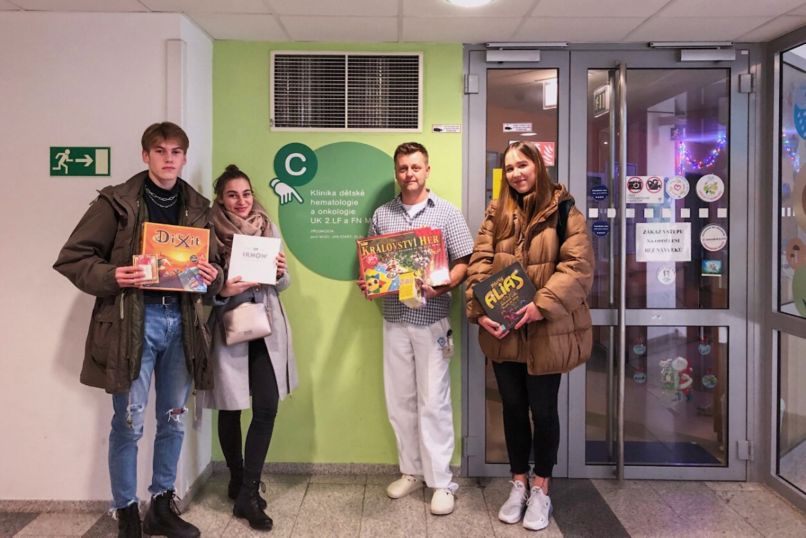 V rámci projektu 72 hodin uvařili žáci z 3.C malé drobnosti pro studenty Hotelové školy Poděbrady. Za vybrané peníze pak nakoupili dárky – především stolní hry pro děti z Kliniky dětské hematologie a onkologie Fakultní nemocnice v Praze Motole. V posledním předvánočním týdnu dárky osobně v Motole předali.