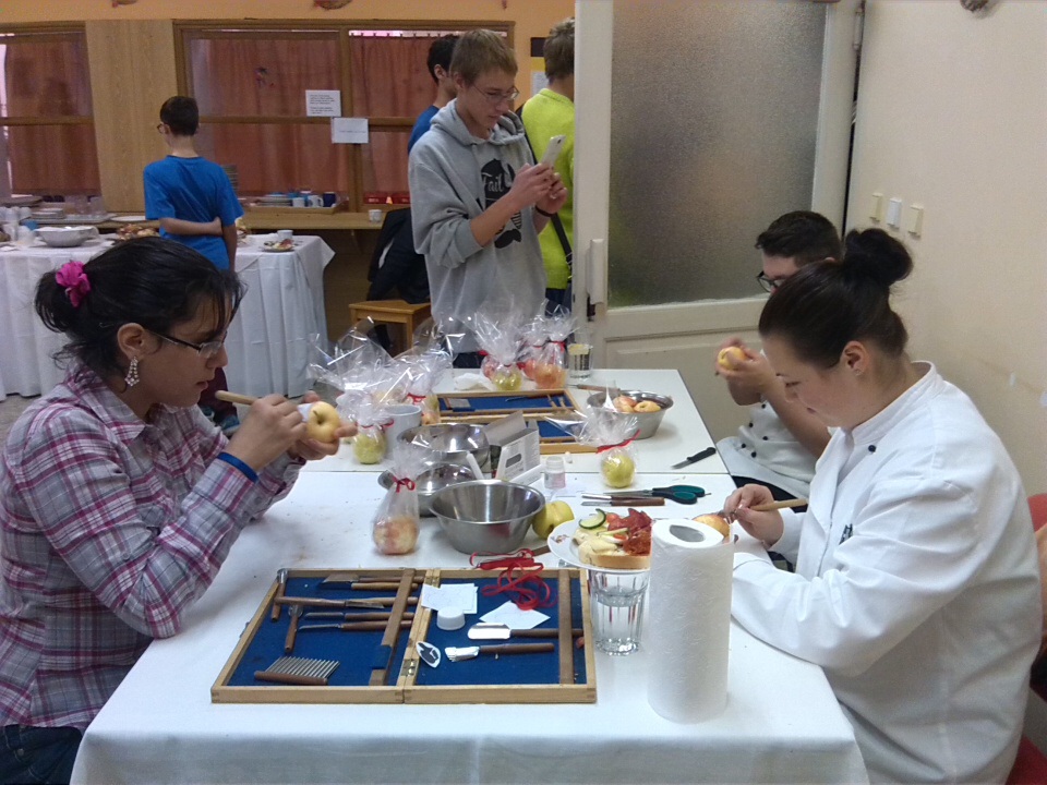 Dne 30.11 2014 jsme se zúčastnili dne otevřených dveří v Dětském domově v Nymburce, kde jsme v rámci spolupráce mezi naší školou a dětským domovem předvedli dětem ukázku vyřezávání ovoce. Děti si samy mohly vyřezat své jablíčko, do kterého nakonec umístily svíčku a vyrobily si tak krásný svícínek.