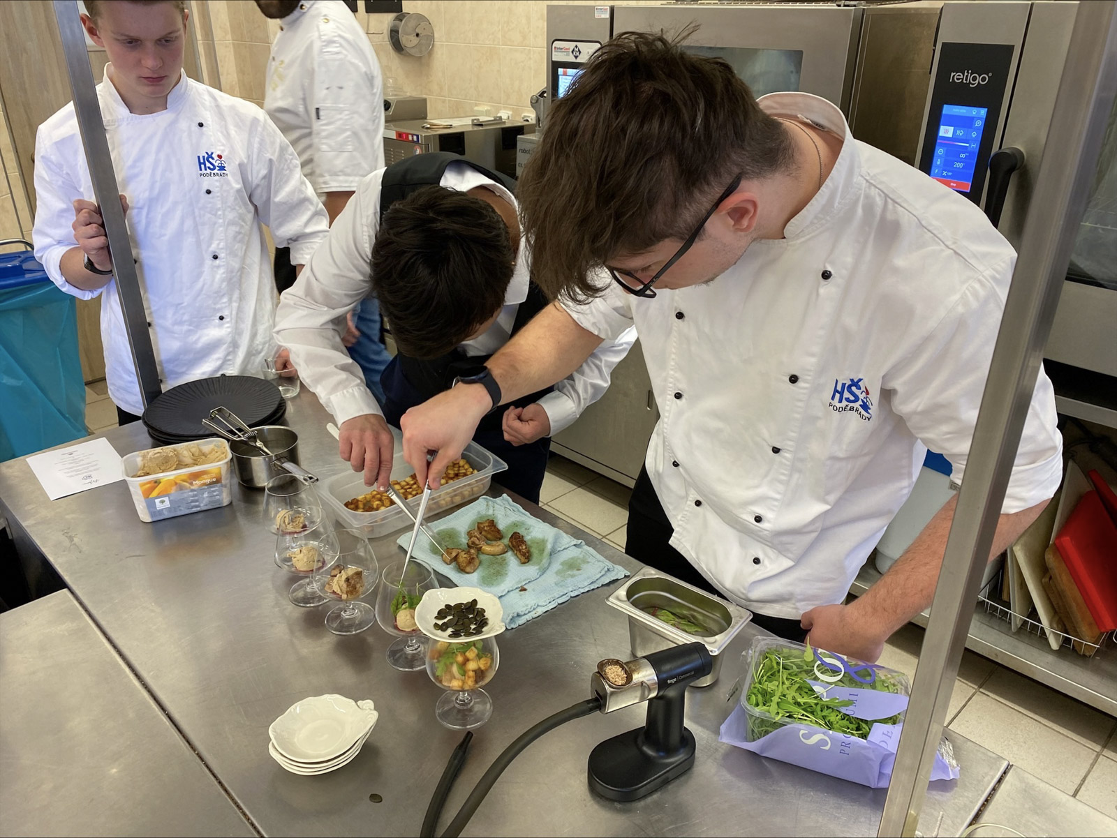 Ve středu 29. 11. 2023 se u nás ve škole uskutečnil workshop od hotelu Chateau Mcely. Žáci se mohli podívat na přípravu a servis tříchodového menu, ale také zkusit namíchat tři drinky z nealkoholického ginu, vodky a rumu. Celá akce přitom byla komentována šéfkuchařem Janem Štěrbou, sous chefem Jakubem Motákem a F&B managerem Michalem Hrčkulákem. Žáci se tedy při této příležitosti podívali pod čepec jedné z nejlepších restaurací v České republice.