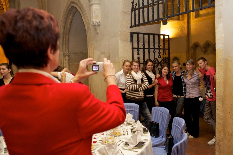 Dne 9.11.2010 se vybraní studenti hotelové školy v Poděbradech shromáždili před Hotelem Junior a netrpělivě vyčkávali na příjezd autobusu, který je odveze na galavečeři letecké společnosti Vitol Aviaton v pražském Anežském klašteře. Ještě nás paní učitelka Koštýřová ani nestihla spočítat a již jsme byli na místě v Praze. Tam nás uvítal zástupce cateringu Golem, pan Vitovský. Ihned jsme byli zaměstnáni. Šikovné ruce děvčat z naší hotelovky začaly pulírovat, prostírat a povlíkat židle, zatímco silné chlapecké paže nosily stoly, židle a stavěly stan. Když bylo vše připraveno, bylo nám ukázano oblečení ve kterém jsme měli obsluhovat. Slečnám bylo přiděleno oblečení na styl sester z kláštera. To chlapcům měly připadnout saka, ale bohužel velikosti sak byly poněkud odlišné od našich skutečných velikostí, a tak přišla vhod typická "hotelovácká" uniforma na obsluhu a servis. To se ale už prostory Anežského kláštera začaly plnit návštěvníky. Hostům byly podány alkoholické nápoje, teplý předkrm, polévka, hlavní jídlo a dezert. Poté přišel na řadu servis kávy. Když hosté dokonzumovali, vyměnili si dojmy z oného večera, začali se pomalu zvedat a opouštět Anežský klášter. Začala akce úklid, vše proběhlo hladce a bez větších problémů či prodlev. Únava se však projevila a tak téměř každý uvítal po poděkování pana Vitovského odchod do autobusu. Pan řidič jistě s radostí pozoroval, že většina studentů usnula a on se tak v klidu mohl soustředit na jízdu. Po příjezdu do Poděbrad se někteří studenti odebrali na internát a zbytek se rozjel do svých příbytků. Každý určitě hned po příchodu domů, lehl na postel a usnul, poněvadž: Hola hola, škola volá.