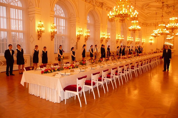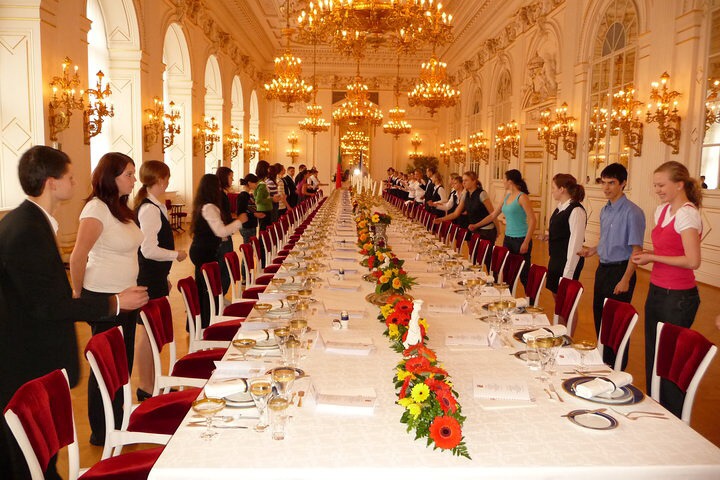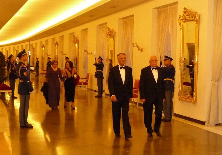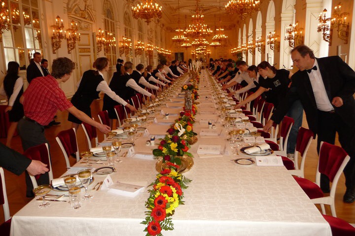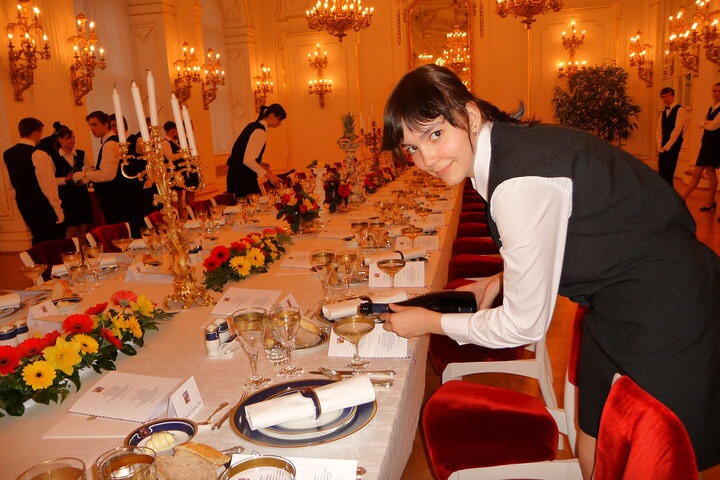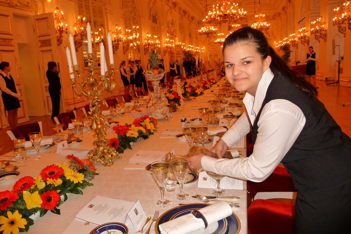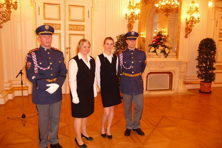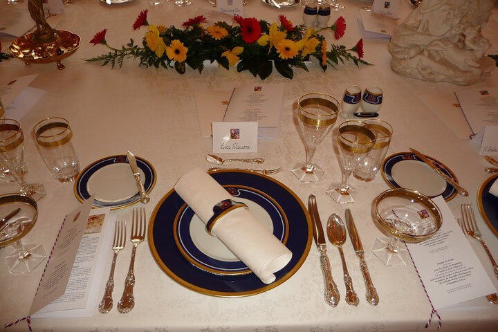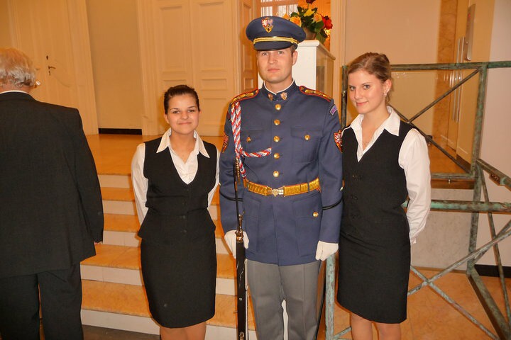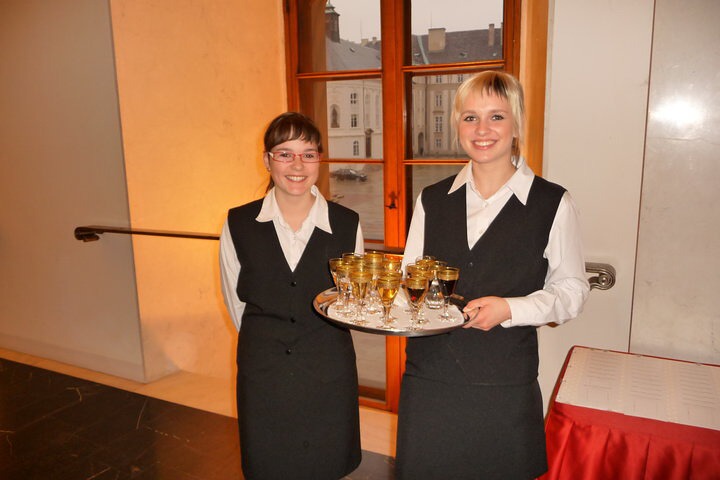 Přes 40 studentů naší prestižní hotelové školy vyrazilo ve čtvrtek 15. dubna 2010 na Pražský hrad, kde jsme obsluhovali pana prezidenta Václava Klause s chotí Livií a prezidenta Portugalské republiky Aníbala Cavaco Silvu s chotí Marií. Slavnostní večeře se podávala v Rudolfově galerii. V menu nechyběla jihočeská kulajda s hříbky nebo kachní prsa.