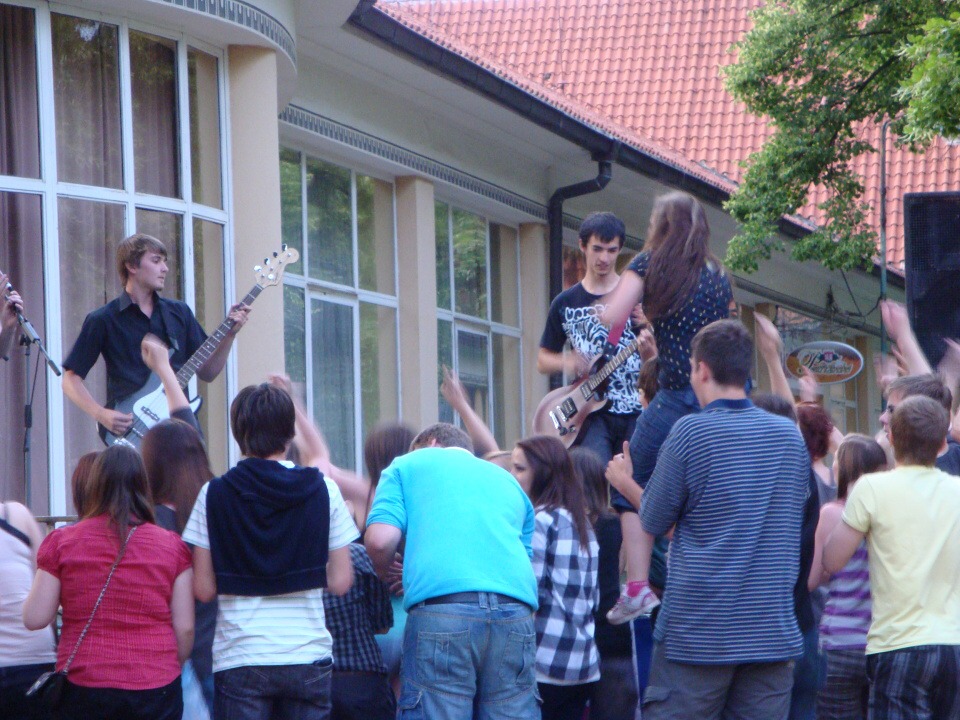 Byla jsem nadšená z obrovské podpory diváků – spolužáků a kamarádů kapely. Koncert byl zajímavý a podle mého názoru se projev kapely zlepšoval s každou další písničkou. Pro mě to byl příjemný zážitek. - Kolik lidí (zaměstnanců, žáků, rodičů a přátel vaší školy) se účastnilo koncertu?