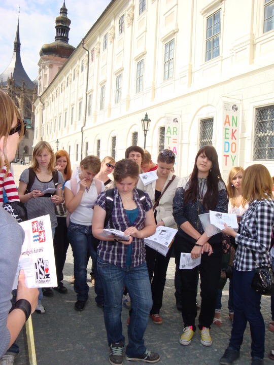 Tomáš měl celý tento projekt naplánovaný opravdu do nejmenších detailů a neponechal nic náhodě. Kromě doprovodných otázek spojených s navštívenými místy jsme dostali příležitost projevit své básnické nadání v parku básníků, napsáním básně o Kutné Hoře. S úkolem se nakonec vypořádali všichni, i když některé básně, podle mého názoru, nebyly úplně na prestižní úrovni, například ta má. Ale ani čas strávený cestováním v autobuse nebyl promarněný. Při výjezdu z Poděbrad nám bylo puštěno video o nejlákavějších místech v okolí Kutné Hory. Bohužel z časových důvodů nebylo možno navštívit všechna tato místa, ale třeba k tomu jednou bude příležitost. Také na zpáteční cestě jsme se nenudili, třeťáci nám ještě stihli popisovat známá místa, kterými jsme projížděli. Všichni průvodci byli dobře informovaní a průvodcování úspěšně zvládli s úsměvem. Při vjezdu do Poděbrad měl Tomáš poslední přání – zazpívat si písničku Sláva a zdar výletu. Přání bylo vyslyšeno, a tak jsme po celém tomto vyčerpávajícím dni unaveně, leč vesele zpívali.