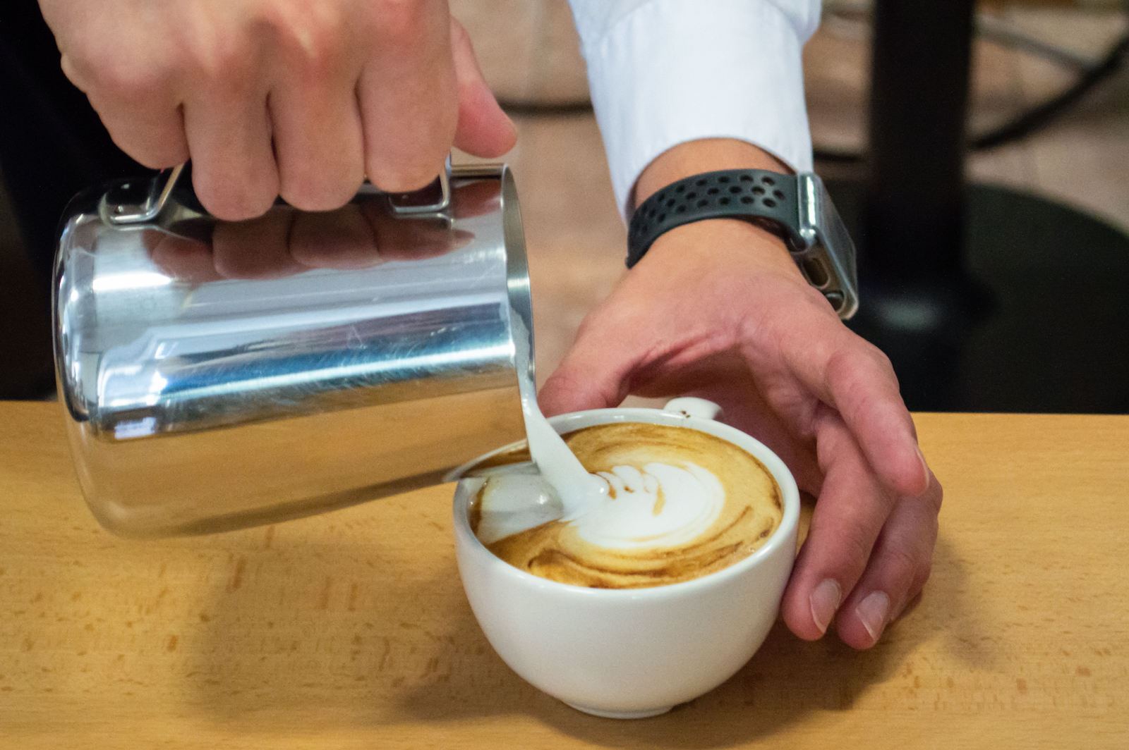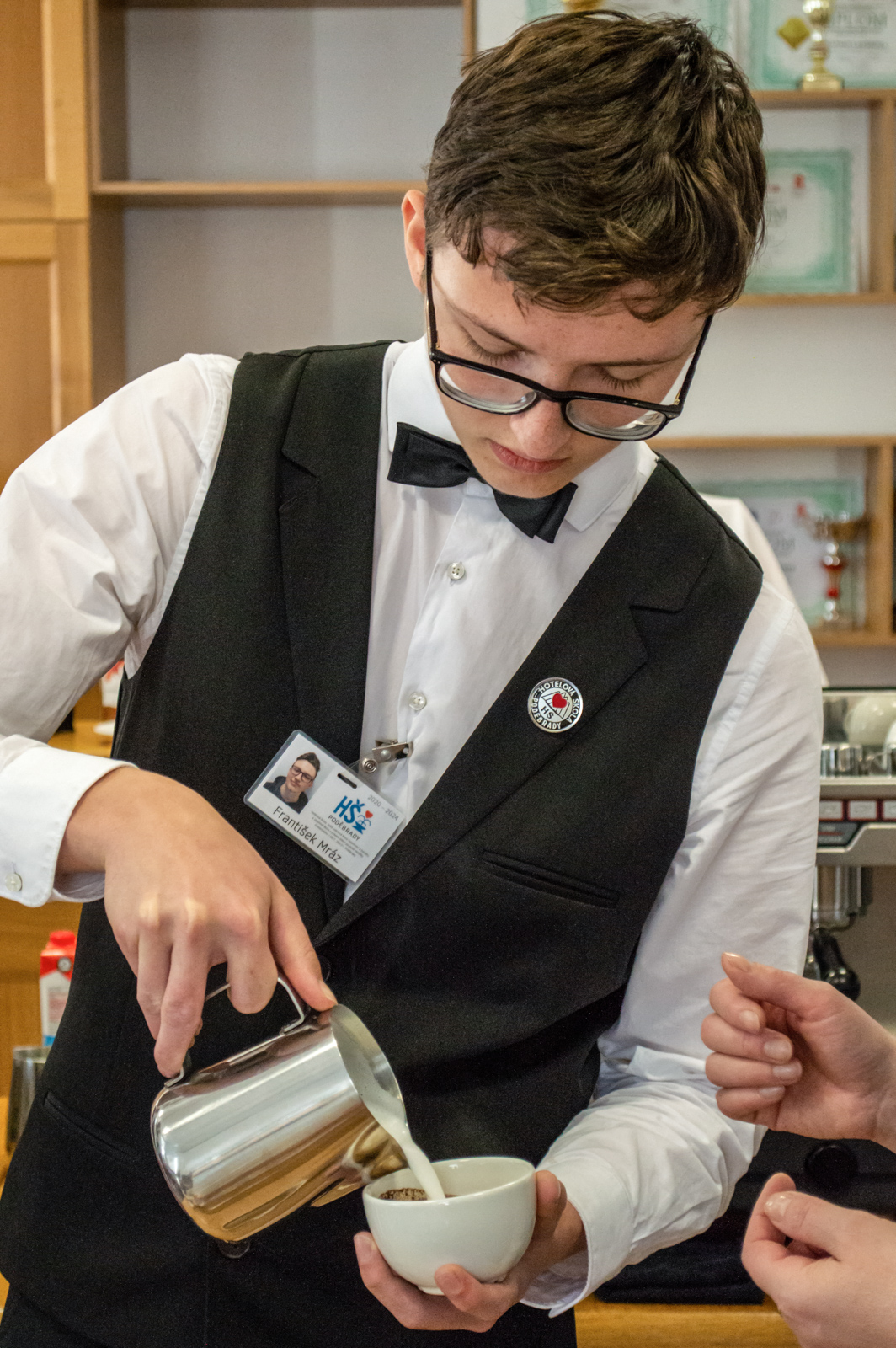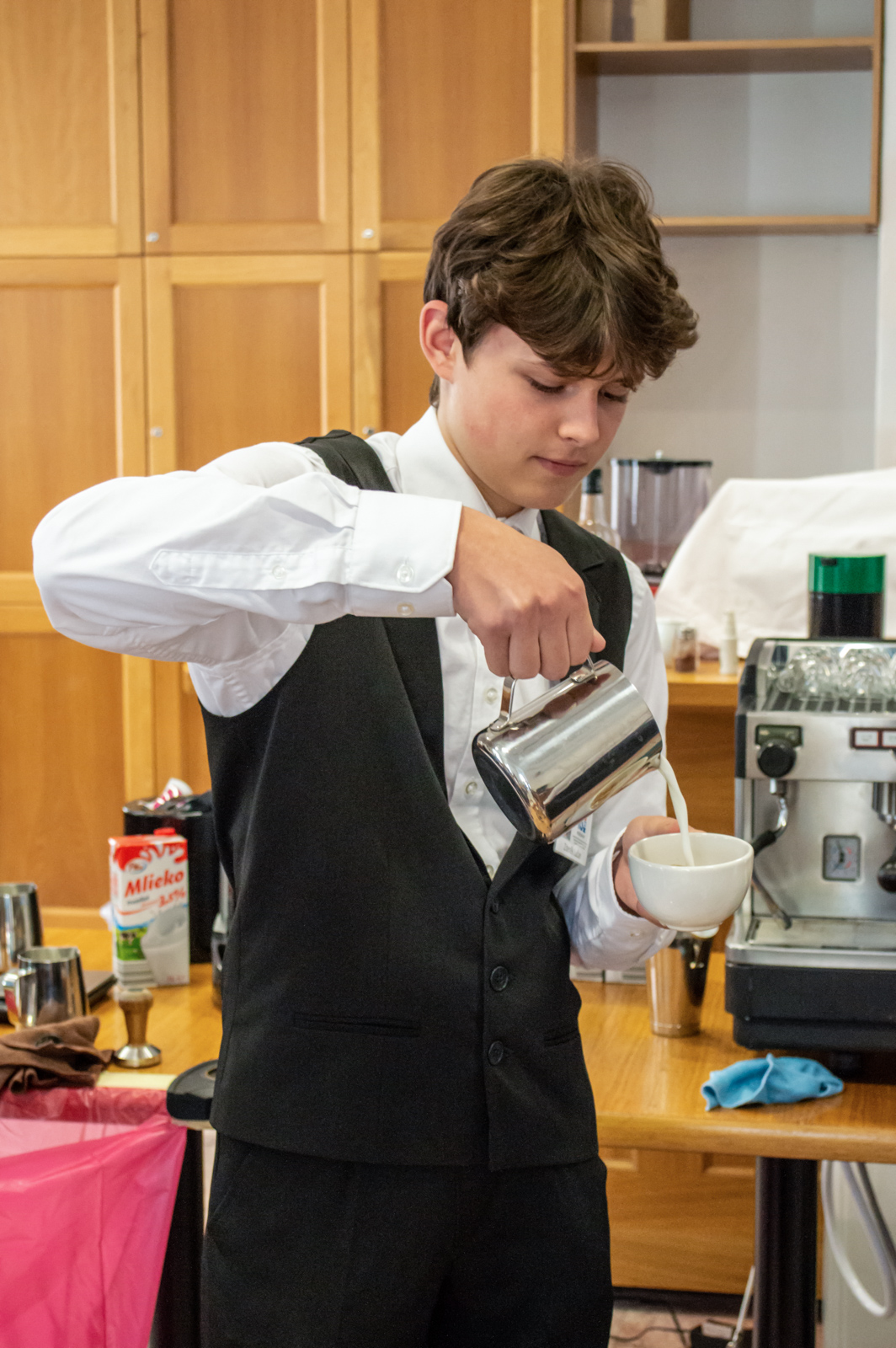 Espressa se nám všem dařila, dodala nám energii a chuť do přípravy cappuccina, a tak jsme se pustili i do šlehání mléka. Naučili jsme se, jak správně mléko našlehat, jakou by mělo mít teplotu a jak udělat správný Latte art. Ten vždy dodá kávě dokonalý efekt a vytvoří každému zákazníkovi úsměv na tváři.