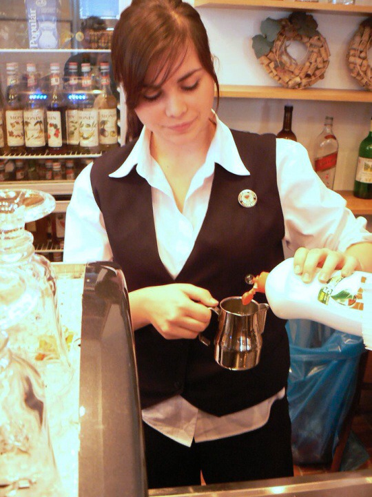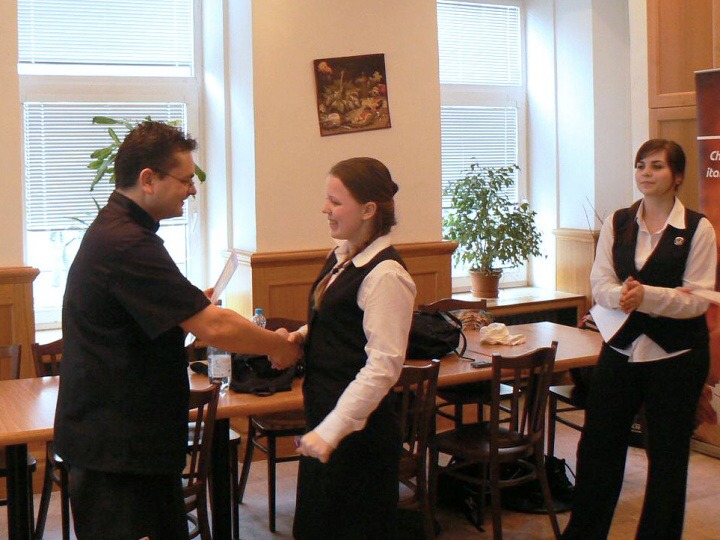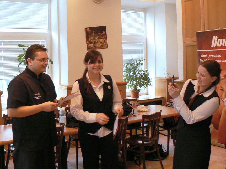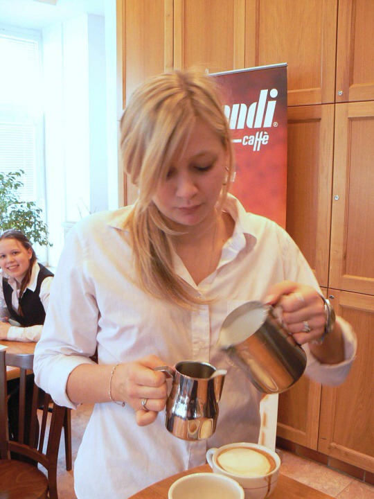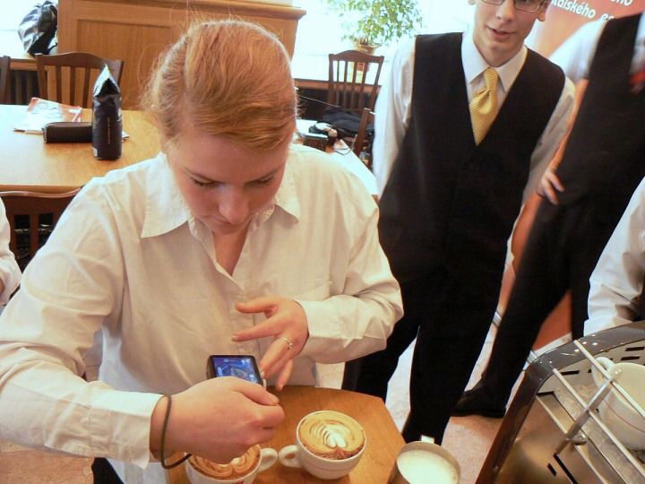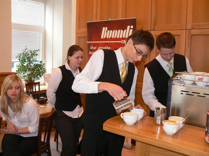 Druhý den ráno jsme trénovali přípravu kávy, pěnu na cappucino a odpoledne se konala soutěž šesti nejlepších studentů.