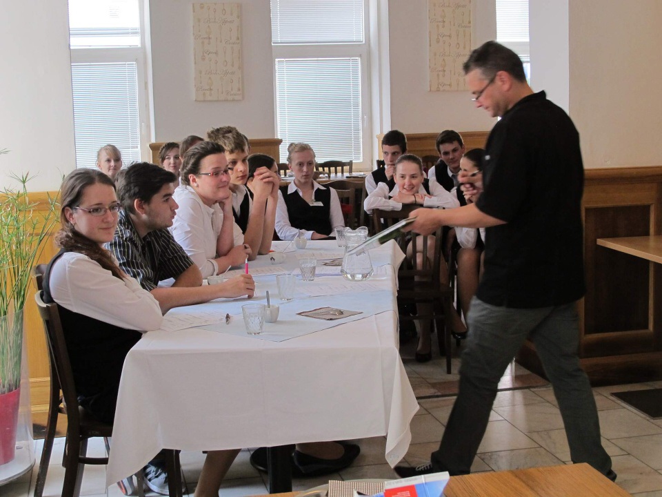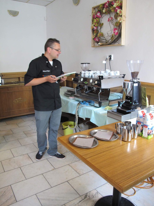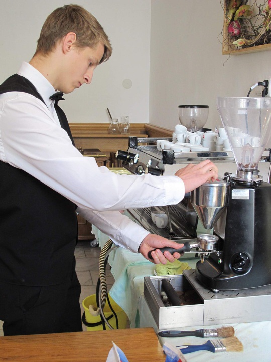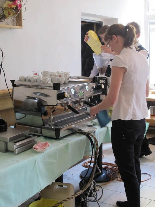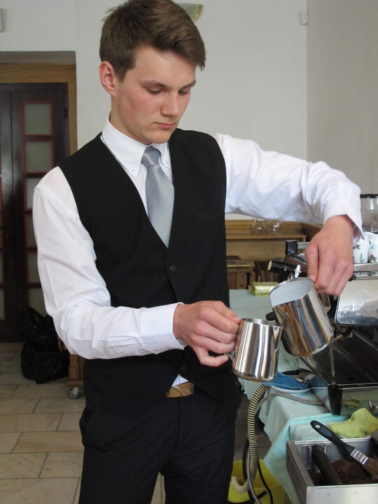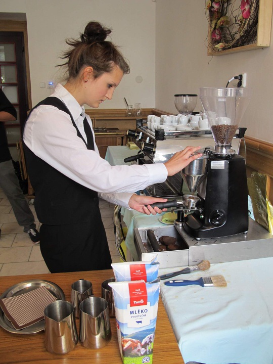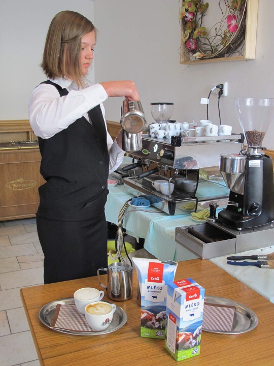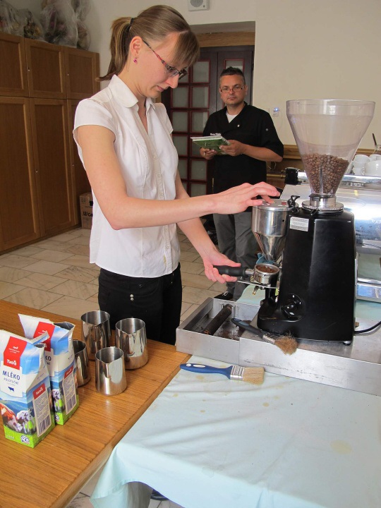 Ve dnech 22. - 23. 5. 2015 měli studenti HŠ a VOŠ možnost zúčastnit se baristického kurzu pod vedením Michala Křižky. První den jsme se dozvěděli informace o tom, jak rozpoznat dobrá kávová zrna, jaké jsou parametry výběrové kávy, kam na chutnou kávu, a další důležité informace pro baristu začátečníka. Po obědové pauze odešla část studentů domů a zbytek se učil udělat správně espresso a jak nejlépe vytvořit micropěnu na capuccino. Další den dopoledne si to samé cvičila skupina, která první den odešla domů. Během celého kurzu nám pan Křižka trpělivě odpovídal na zvídavé otázky a sám vyprávěl baristické historky ze života.