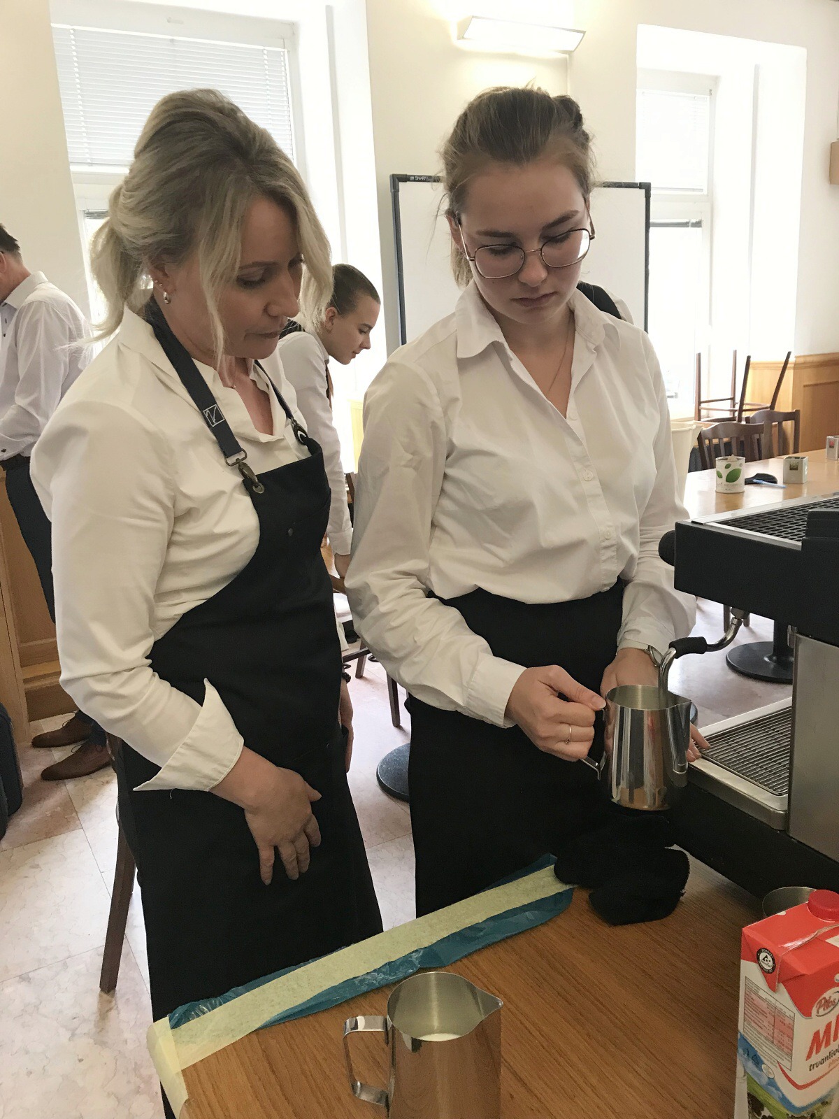 Druhý den jsme zdokonalovali naše cappuccina, ukázali si přípravu latté macchiata.