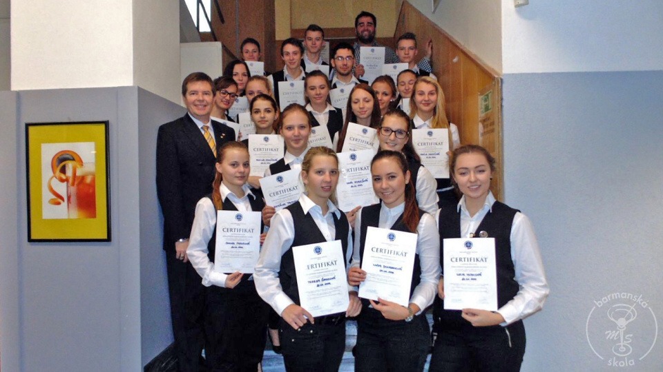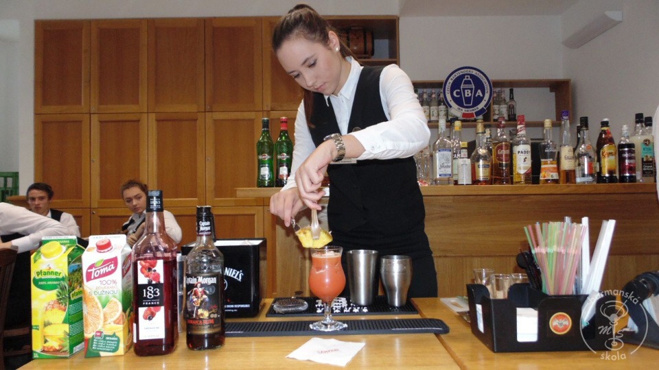 Ve dnech 18. - 22. 11. 2015 se na hotelové škole konal barmanský kurz pana Smolného z Pardubic. Tento kurz už zde proběhl několikrát a pokaždé úspěšně. Pan Smolný nás naučil míchat drinky, pracovat se shakerem a předal nám spoustu užitečných informací z oblasti barmanství. Každý z nás si odnesl nějakou informaci, kterou do budoucna určitě využije. Pan Smolný učí velmi zábavným a naučným stylem. Ke každému produktu má svůj příběh, při kterém se pobavíte. Tento kurz bych doporučila každému, nejen těm, kteří by tuto práci chtěli dělat, ale i těm, kteří ještě nevědí, co dělat chtějí. Absolvováním tohoto kurzu získáte nové zkušenosti i certifikát.