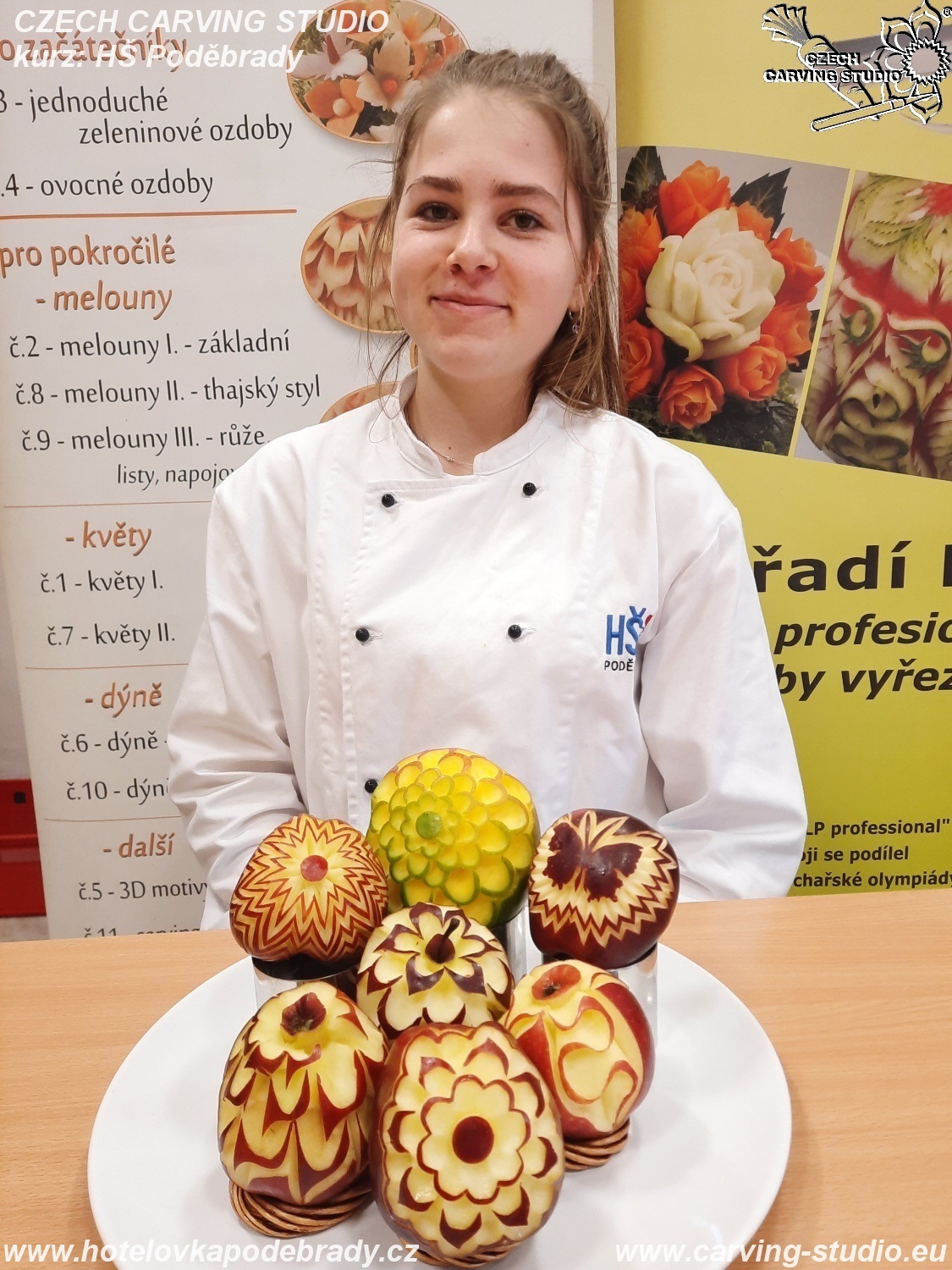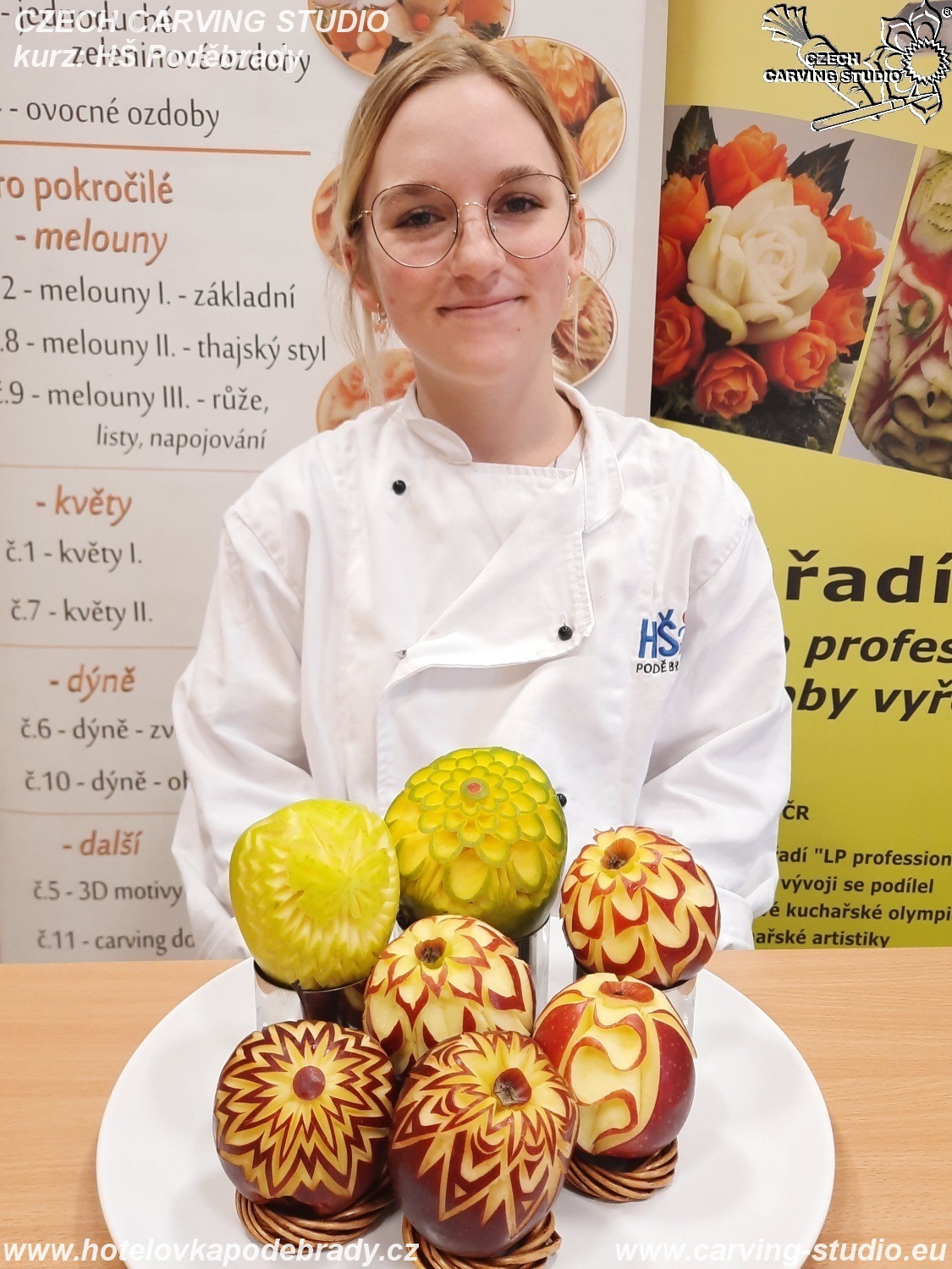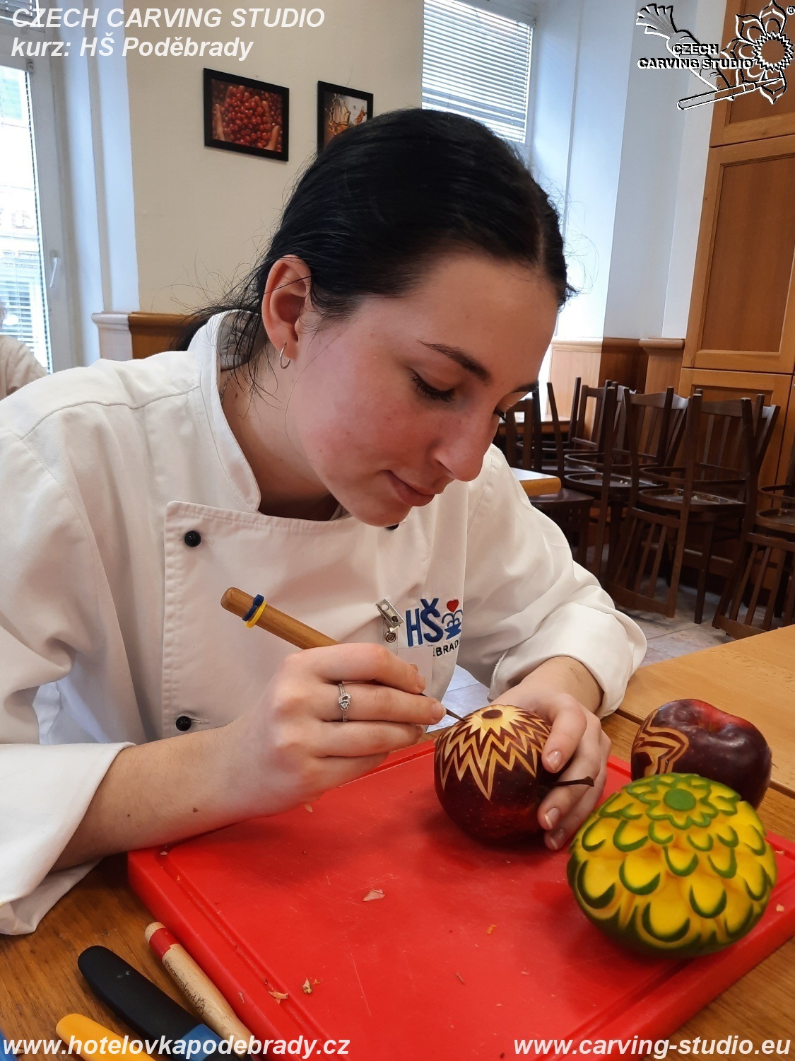 Celý kurz jsme zakončili soutěží ve vyřezávání jablek. Moc jsme si tyto dva dny užili a těšíme se na pokračování v podobě melounů a růžiček.