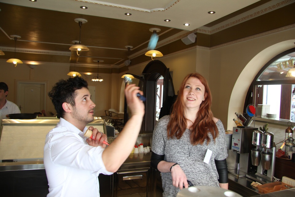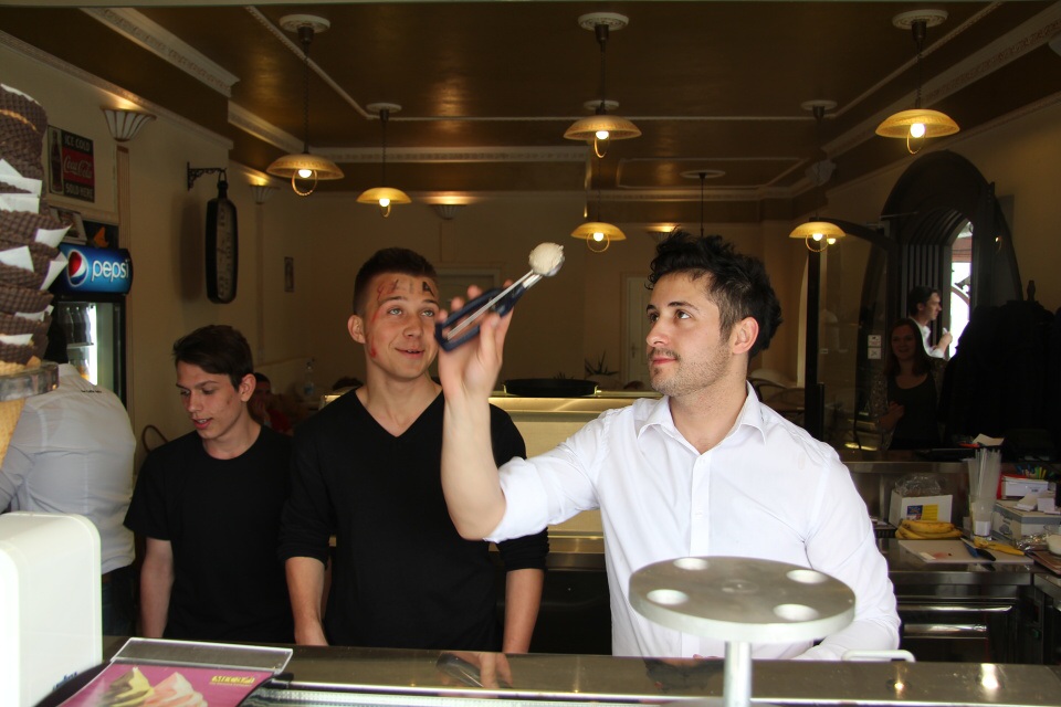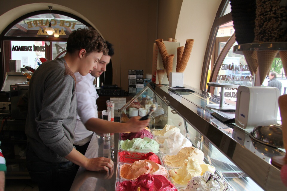 Dne 30.4.2015 vyrazila naše třída 2.A místo odpoledního vyučování do ICE CAFFE ADRIA v Poděbradech. S velkým nadšením jsme se učili různé triky se zmrzlinou. Pan majitel nás postupně všechny zapojoval do vyhazování zmrzliny do vzduchu a chytání jí do misky. Také nám předvedl, jak snadno srovnat 12 kopečků na jeden kornout. Ochutnali jsme snad všechny příchutě zmrzlin, které v Adrii prodávají. Škoda jen, že jsme se nedozvěděli, jak se taková dobrá zmrzlina vyrábí. To je totiž tajemství........