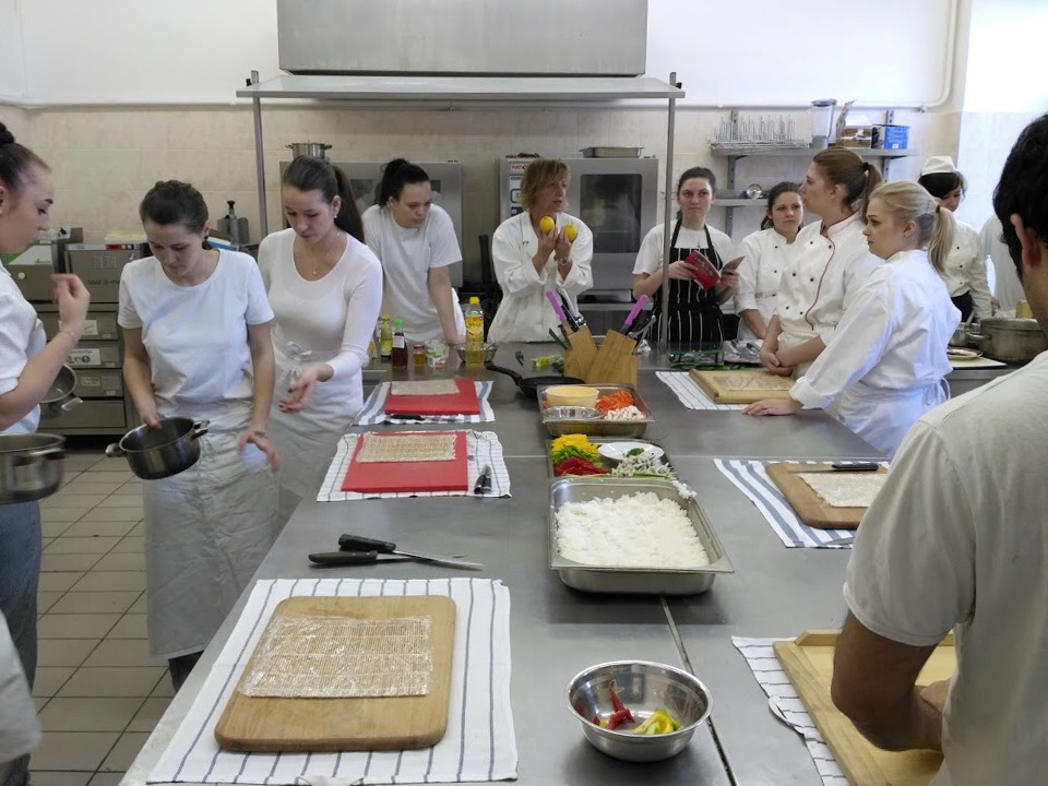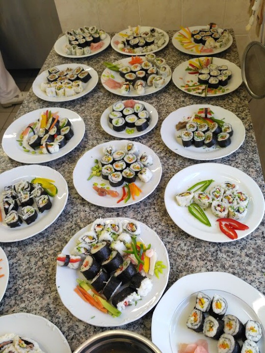 Ve čtvrtek 16. března se studenti předmětu mezinárodní gastronomie z 1. VOŠ pod taktovkou Ing. Evy Krátké zúčastnili sushi kurzu. Dozvěděli se spoustu nových informací ohledně historie sushi, jeho druzích a způsobech konzumace. Po praktické stránce se zabývali především jeho samotnou přípravou a následnou ochutnávkou. Skupina se sešla v jedné z našich odborných učeben TPP a příprava sushi ji zaměstnala na celé odpoledne. Kurz probíhal v příjemné atmosféře, dobré náladě a studenti odcházeli s úsměvem na rtech, s nově nabytými znalostmi a s plnými nádobami sushi.