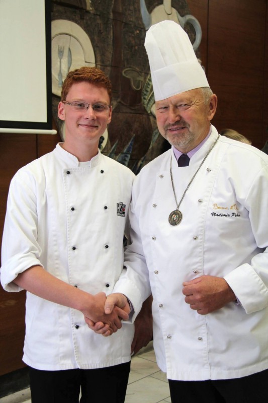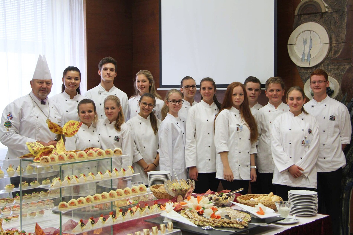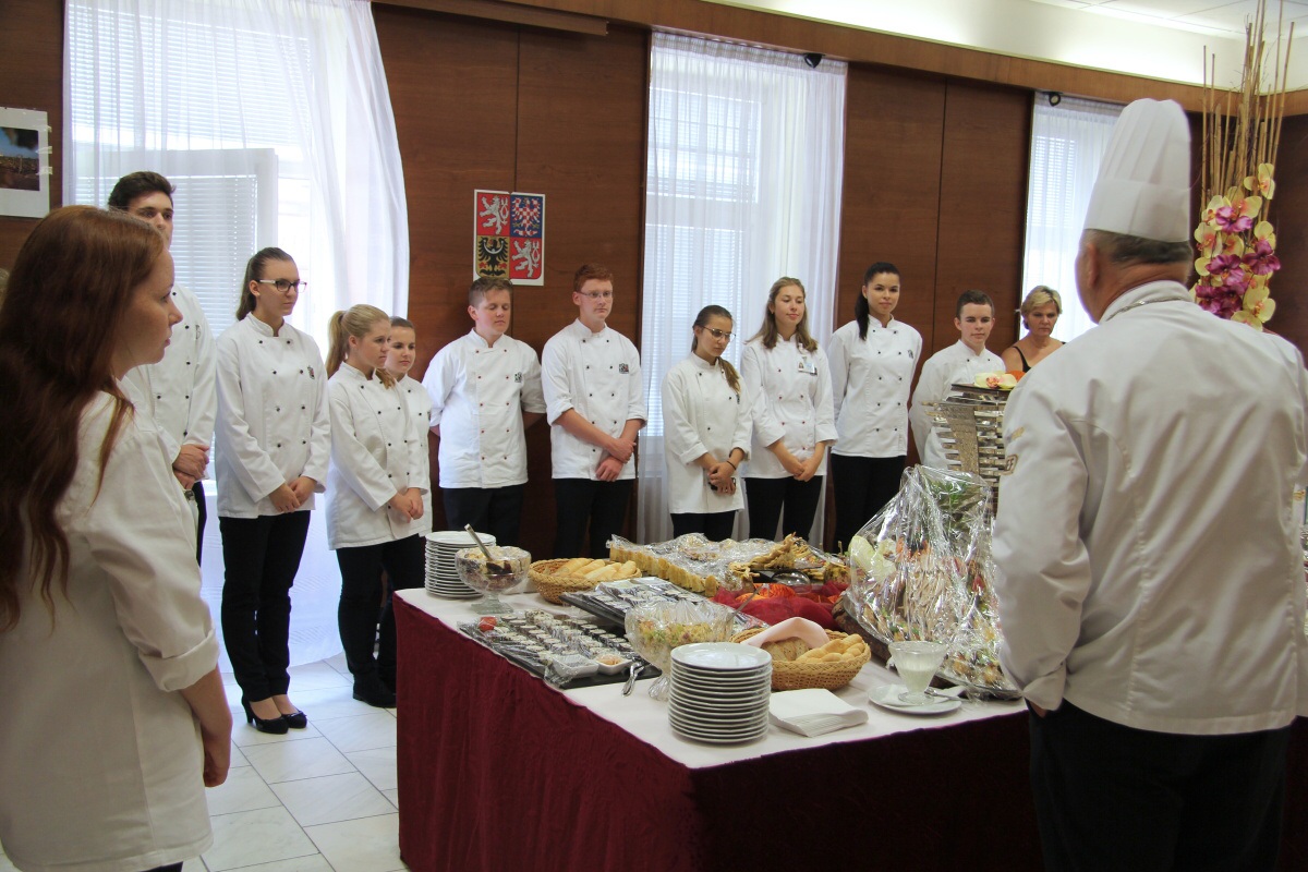 Na začátku školního roku se žáci školy, kteří měli zájem, zúčastnili kurzu studené kuchyně pod vedením mistra kuchaře Vladimíra Picky. Naši školu navštívil mile rád už po několikáté. Kurz jsme zahájili teoretickou částí ve středu v 8:00 hodin ráno. Bavili jsme se o významu a smyslu studené kuchyně, o obecných zásadách přípravy a moderních trendech v přípravě. Stihli jsme si připravit i základní pochoutková másla, pěny a saláty na další den, které jsme mazali na chlebíčky a kanapky, plnili syrové a šunkové rolády, vařená vajíčka a rajčata.