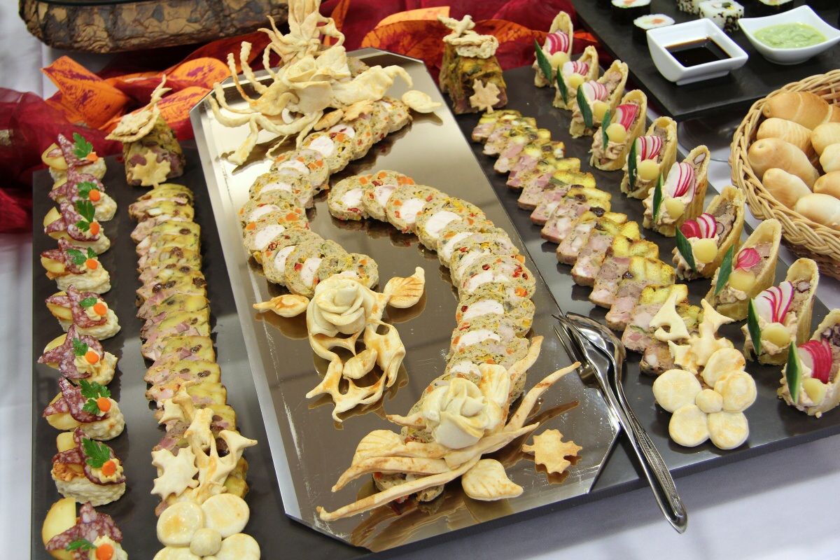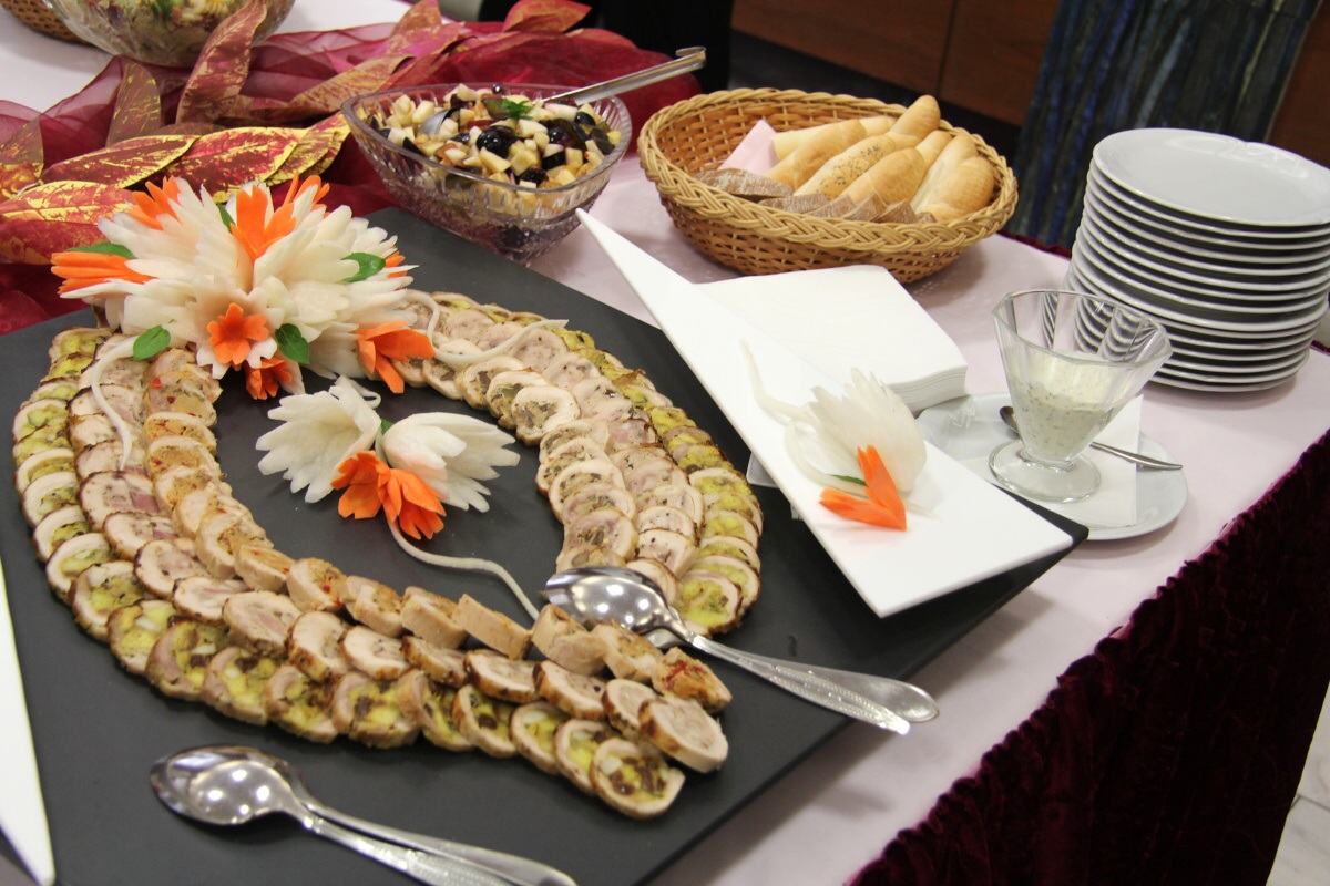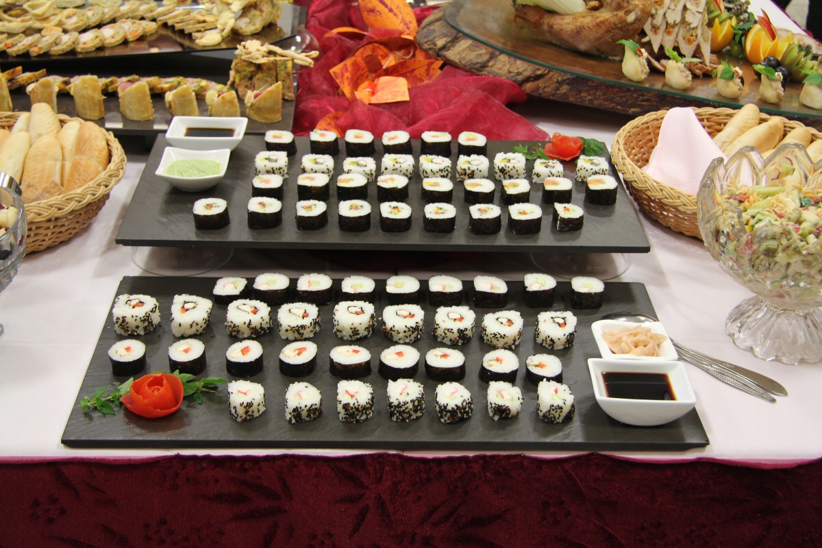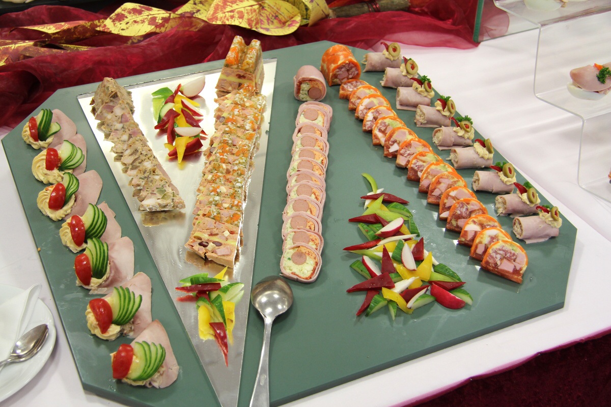Poslední čtvrtý den jsme výrobky nakrájeli a nadekorovali na rautové mísy. Připravili jsme místnost pro rodiče na závěrečný raut a předávání osvědčení. Před zahájením rautu jsme ještě dodělávali sushi, aby bylo co nejčerstvější.