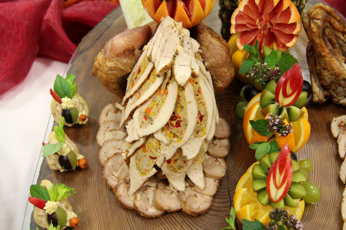 Třetí den jsme už připravovali náročnější výrobky – Štrasburskou kachnu, rolovaná masa, galantiny z drůbeže, teriny, paštiku v těstě, aspiky a další. Na závěr jsme si napsali kontrolní test.
