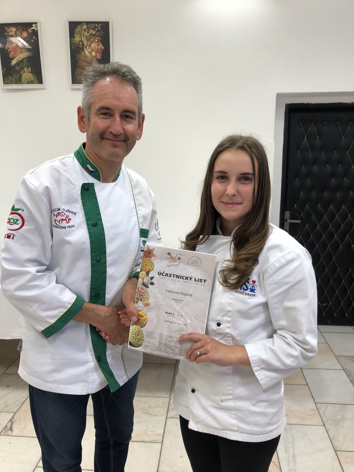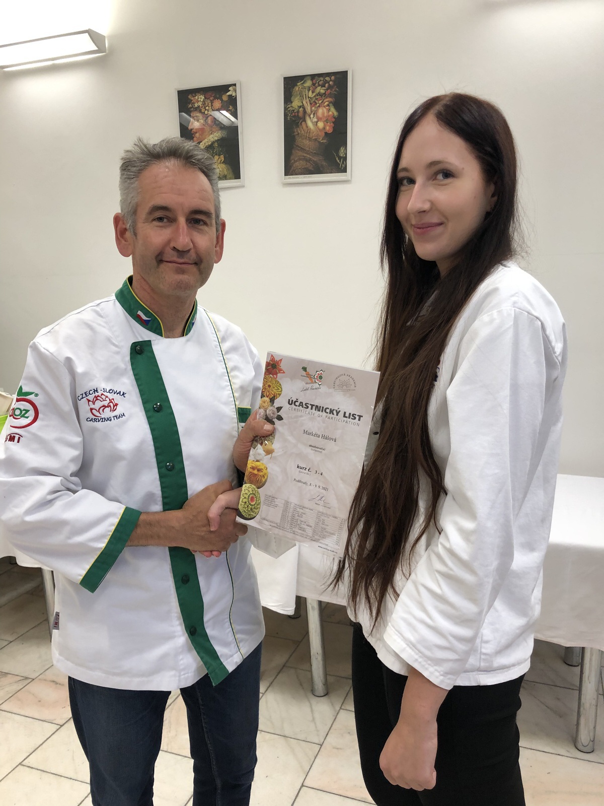 Pan Luděk Procházka nám dopodrobna ukázal, jak se zeleninou a ovocem pracovat, jak z těchto surovin vykouzlit nádherné ozdoby a budit v lidech dotazy typu: „Jak jste to z toho vyřezali?“ a kolikrát to bylo téměř jednoduché a přitom okouzlující.