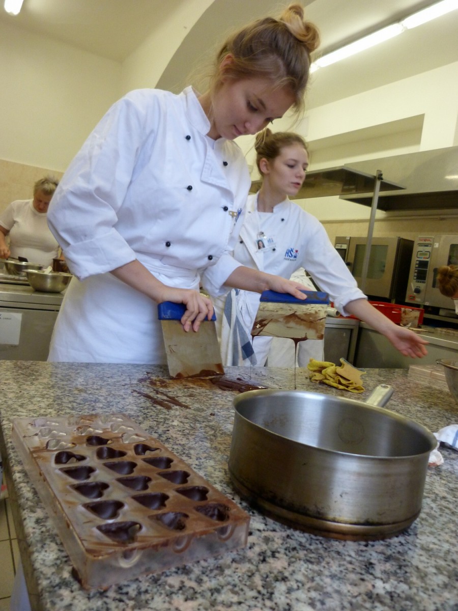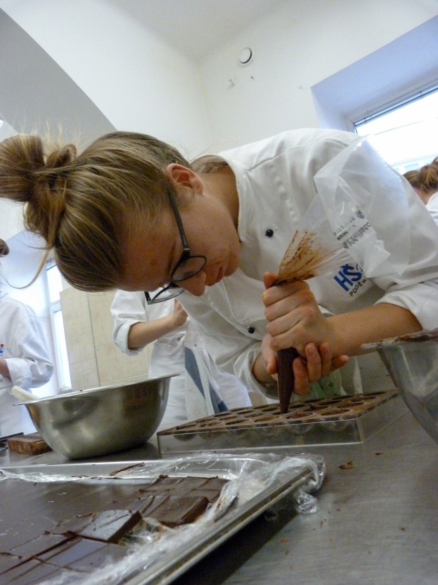 Formované a krájené čokoládové pralinky včetně náplní a povídání o čokoládě. To byl další z cukrářských kurzů, který proběhl 2. 11. 2019 na naší škole pod vedením Lucie Průšové.