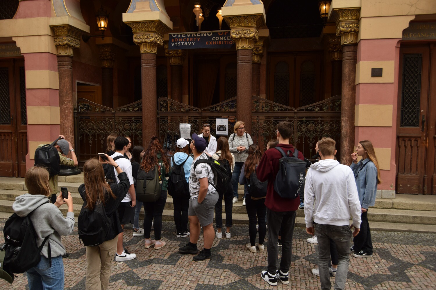 Po cestě jsme navštívili jednu z nejmladších synagog v Praze, a to Jubilejní, a také jsme se zastavili před Českou národní bankou.