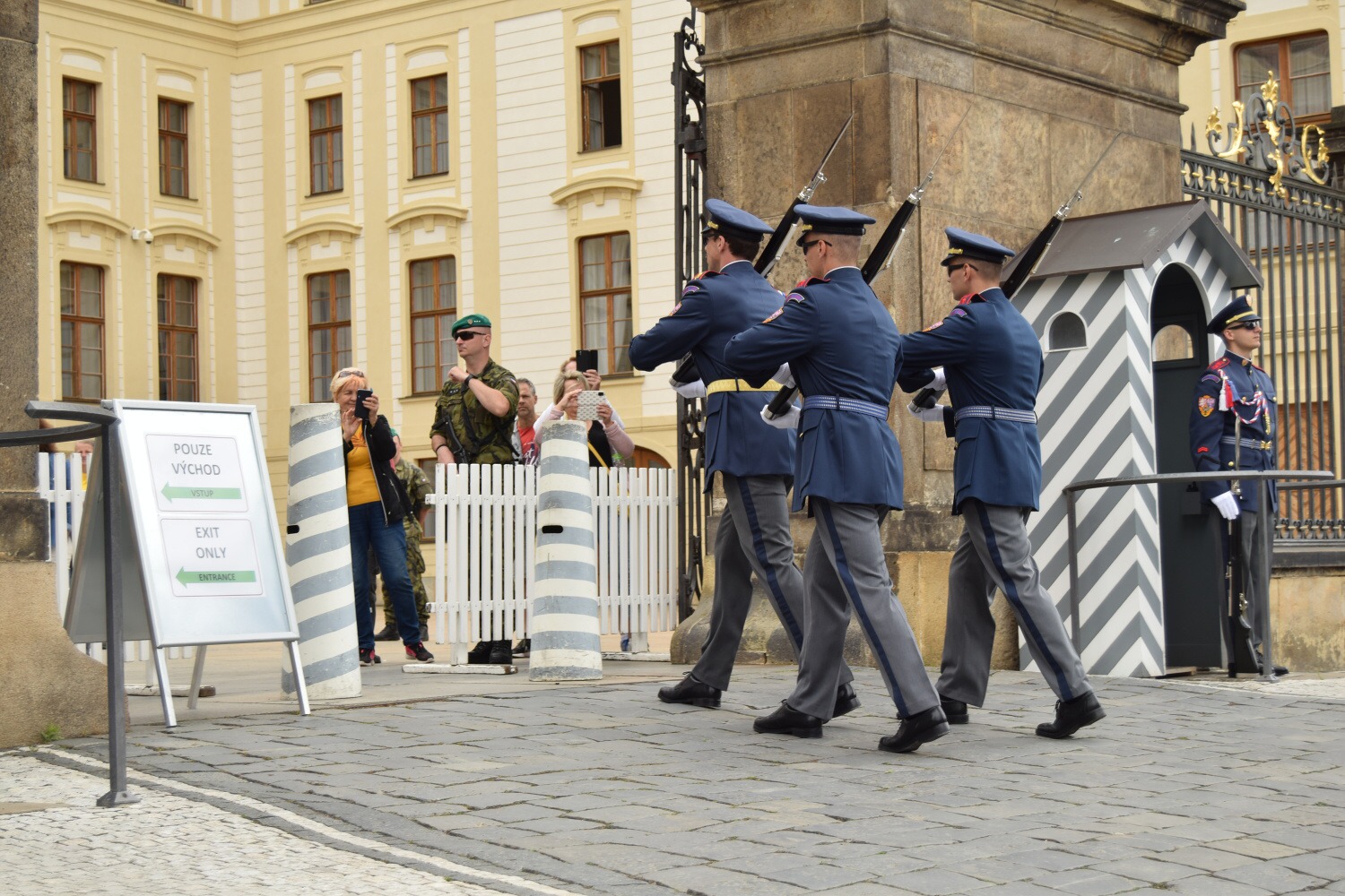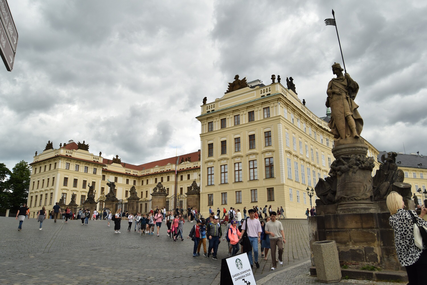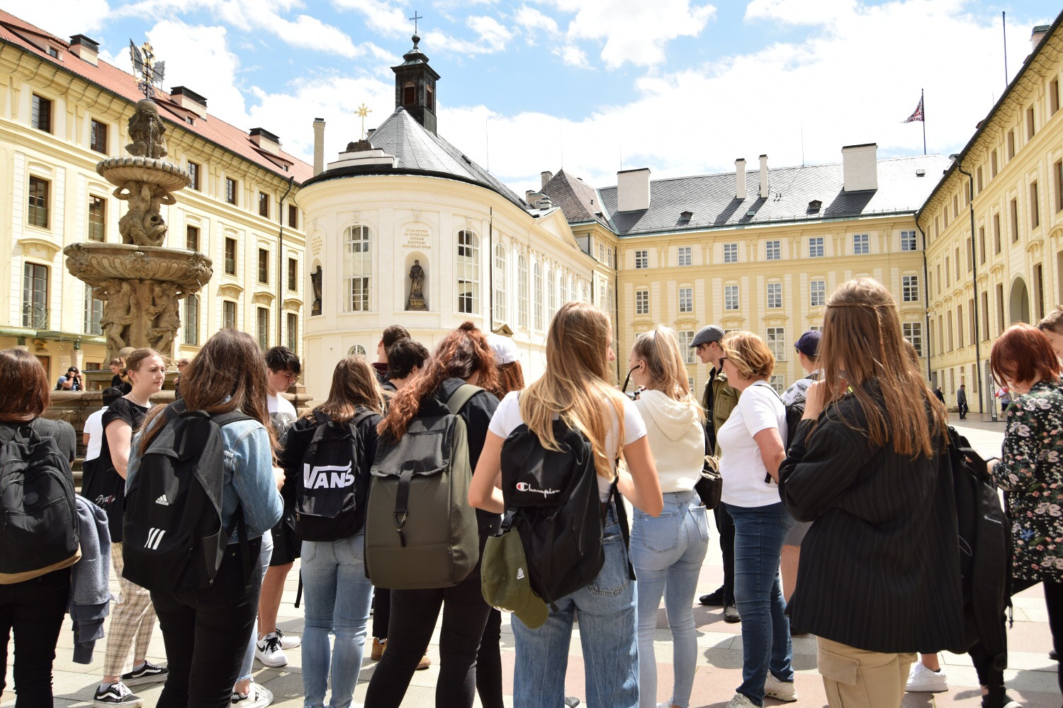 Po Karlově mostě jsme se dostali na Malostranské náměstí, kde jsme se po půlhodinové pauze opět sešli a vyšlapali pořádný kopec až nahoru k Hradu. Tam jsme dokonce zahlédli slavnostní výměnu stráží a hádám, že většina z nás to viděla poprvé v životě.