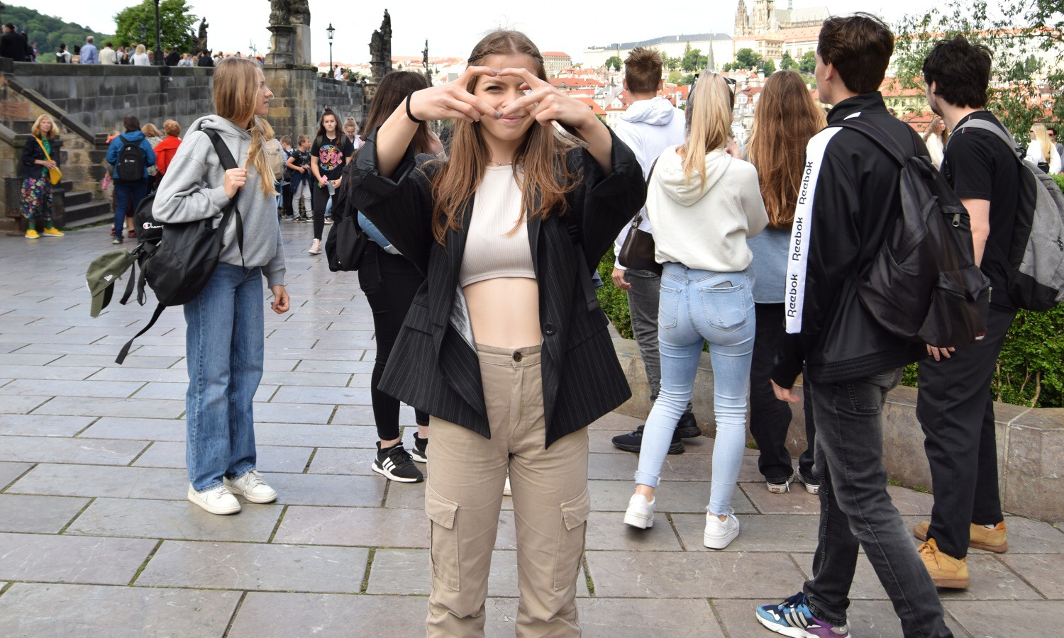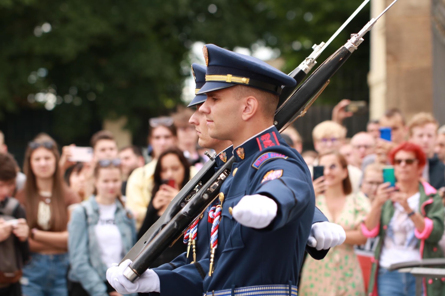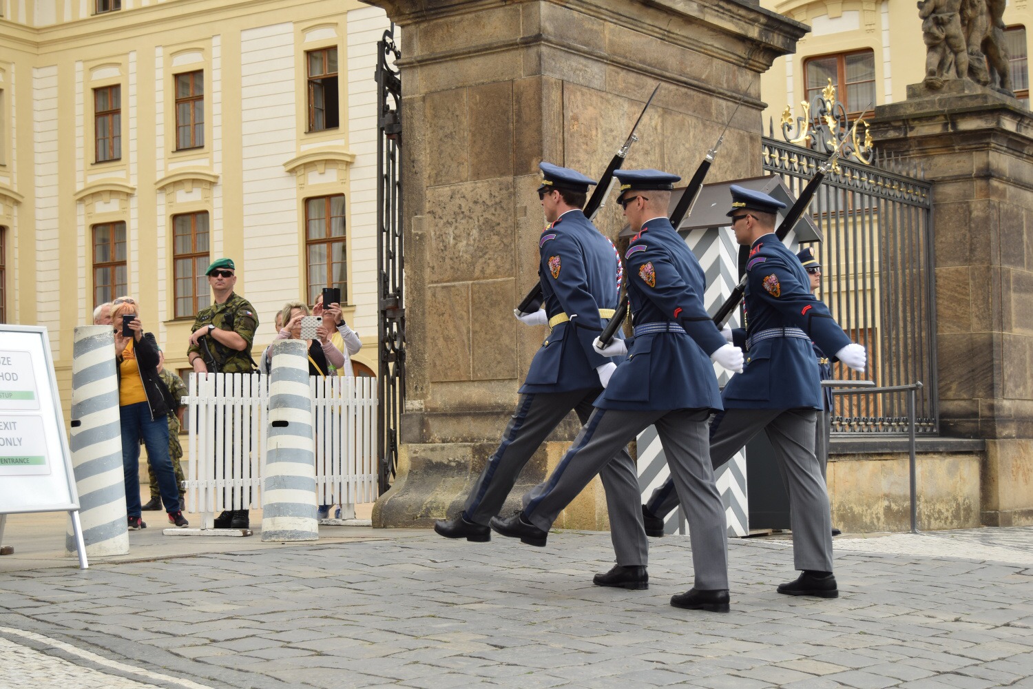 Po Karlově mostě jsme se dostali na Malostranské náměstí, kde jsme se po půlhodinové pauze opět sešli a vyšlapali pořádný kopec až nahoru k Hradu. Tam jsme dokonce zahlédli slavnostní výměnu stráží a hádám, že většina z nás to viděla poprvé v životě.