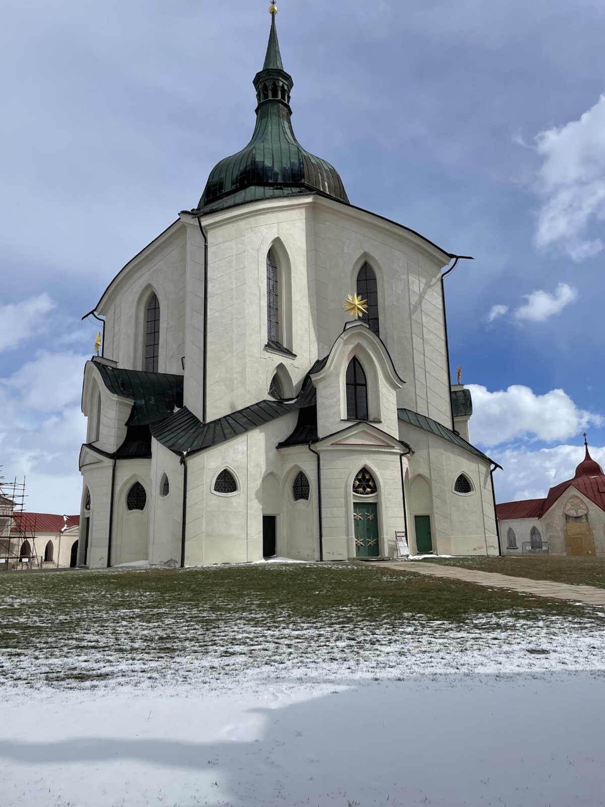 Ráno v 8. hodin jsme se všichni sešli na Riegrově náměstí, kde na nás čekal autobus s panem Noháčkem. První zastávkou byla Kutná Hora – Sedlec, kde jsme navštívili Katedrálu Nanebevzetí Panny Marie a sv. Jana Křtitele a kostnici. Následovala Zelená hora, kde jsme navštívili poutní kostel Sv. Jana Nepomuckého. Potom jsme společně dojeli k ubytovacímu zařízení ve Žďáru nad Sázavou. Večer nás čekala už jen večeře a animační program, který připravovala Anna Šibravová a Adéla Dvořáková.