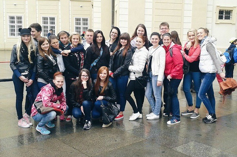 Ve středu 6. 5. 2015 jsme zavítali do matky měst – Prahy, abychom se společně vydali po stopách Královské cesty. Naše trasa začínala v budově Hlavního nádraží, kde jsme my průvodci (studenti předmětu průvodcovská činnost) vyzvedli rozdělené skupiny 3. ročníku a společně jsme vyrazili na historickou prohlídku města, kudy dříve projížděli nastávající čeští králové ke korunovaci. Nechali jsme se inspirovat a náš studentský průvod vyrazil do malebných uliček staré Prahy. Přes Jeruzalémskou ulici okolo synagogy jsme došli na náměstí Republiky, odkud se vine Královská cesta. Krásy Prahy jsme také objevili na konci Celetné ulice, která ústí na Staroměstském náměstí, kde nás v 10 hodin přivítal líbezný zvuk Pražského orloje. Břehy Vltavy jsme společně přešli přes významný Karlův most až na Malou Stranu. Na vrcholu před námi se tyčil Strahovský klášter a Hradčany, jejichž dominantou je monumentální katedrála sv. Víta a Pražský hrad, kde po zhlédnutí ceremoniálu střídání stráží byla naše nádherná procházka úspěšně ukončena.