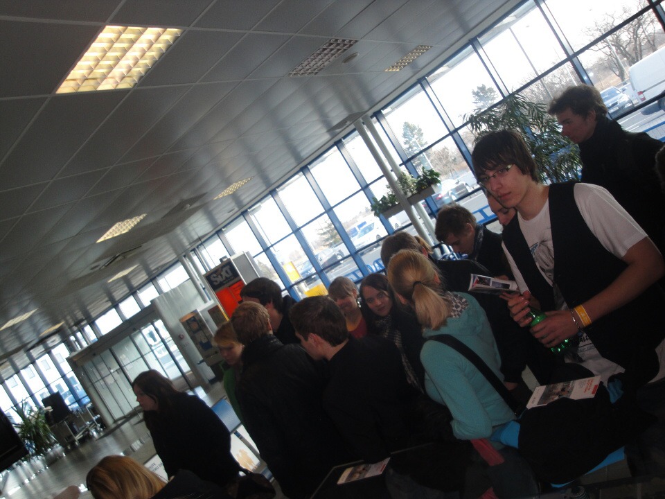 Na vytoužený terminál jsme bez problémů dorazili během 30 minut.Ještě než nás přivítala velmi sympatická paní průvodkyně, od které jsme získali oranžový pásek na ruku, jenž nás opravňoval k přístupu do prostor, kam se normální smrtelník jen tak nepodívá, v klidu jsme se mohli občerstvit či si odskočit. Naše exkurze začala videem s ukázkou celého areálu a pár základními údaji o letišti. Poté jsem prošli bezpečností kontrolou přes detektor kovu (a ne všichni dokázali projít bez důsledné prohlídky od pracovníků Českých aerolinek, kteří jsou povinni po zaznění výstražného tónu prohledat bez výjimek každého).