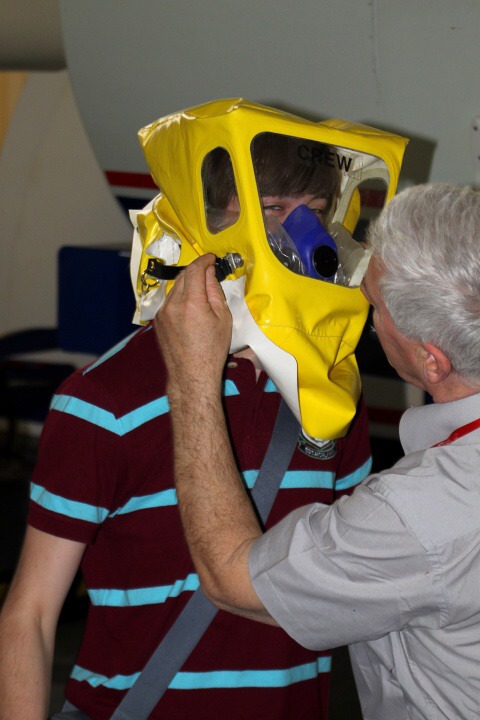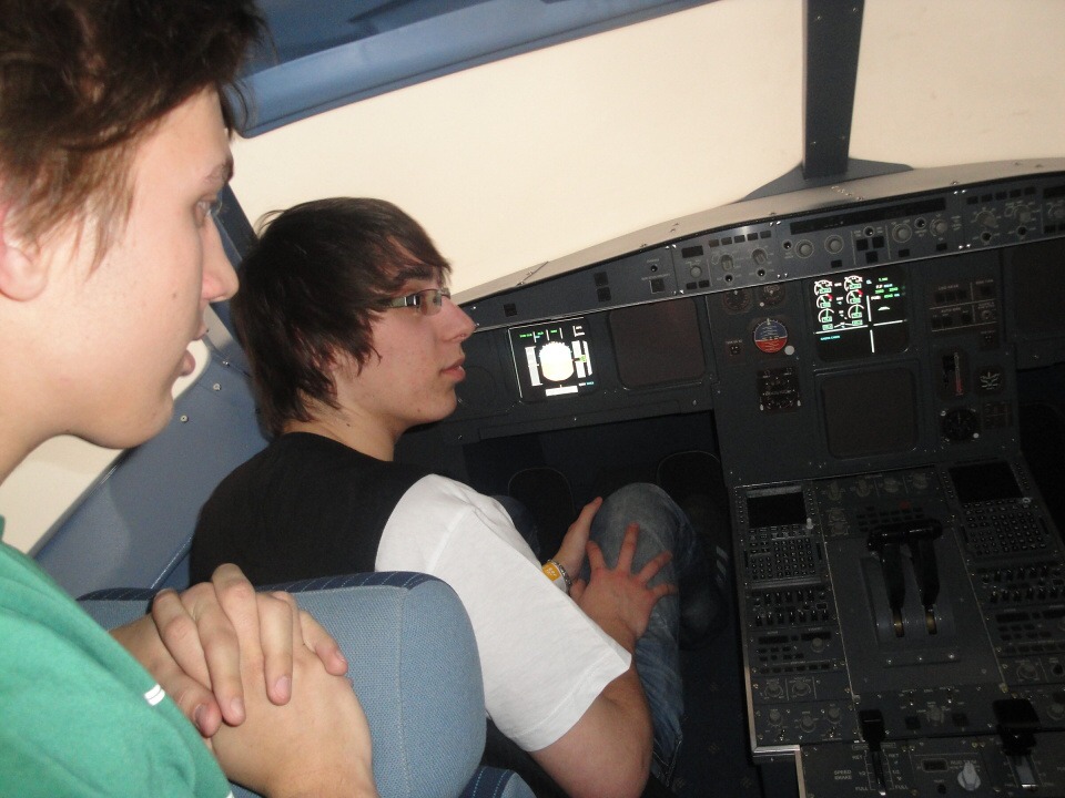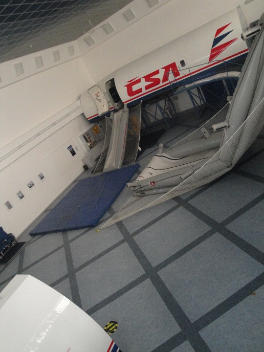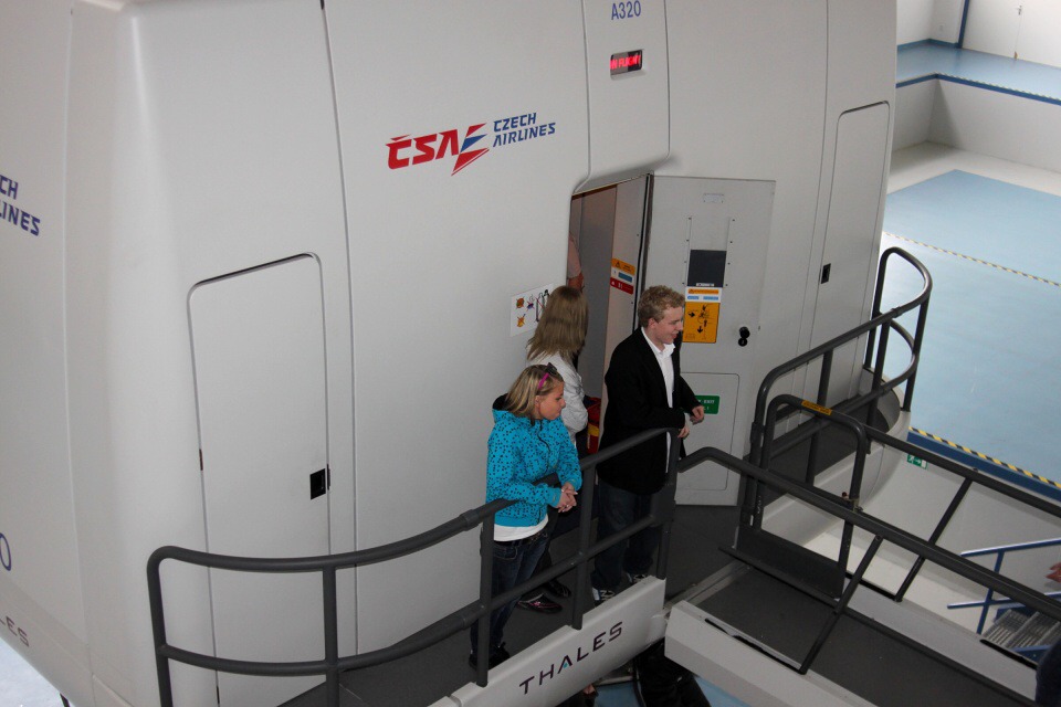 Po projížďce a výkladu jsme se vydali do výcvikového centra ČSA, kde se nás ujal zástupce vedoucího celého zařízení a připojil se k němu i vedoucí výcviku. Prošli jsme si celé zázemí, včetně modelu kokpitu letadla a také prostoru pro posádku, ale také jsme si vyzkoušeli, jak vypadá příprava pro letušky.