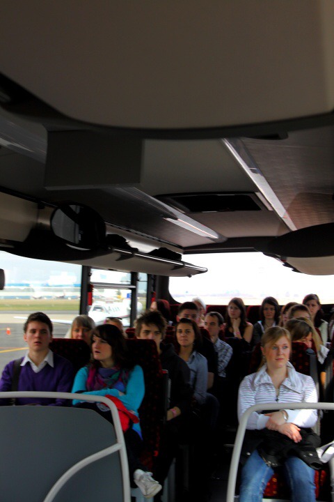 Naše exkurze probíhala formou výkladu ve vyhlídkovém autobuse, kdy jsme měli možnost vidět všechny přistávací dráhy, letadla a pomocné pracovníky opravdu z velmi malé vzdálenosti, a přitom nám paní průvodkyně podávala výklad.