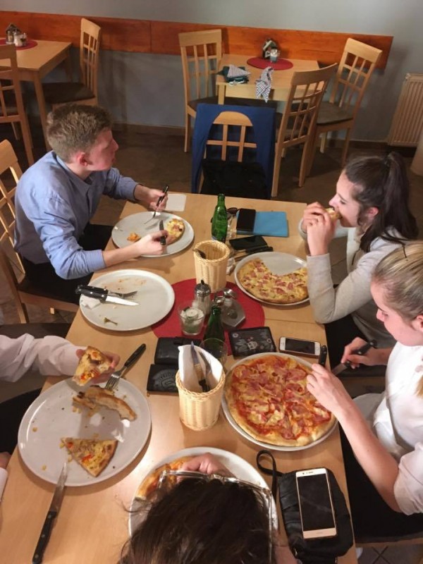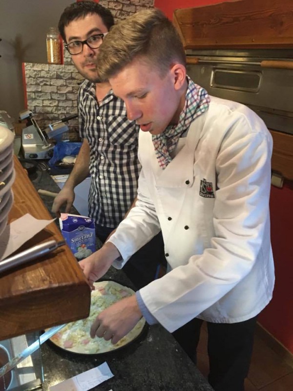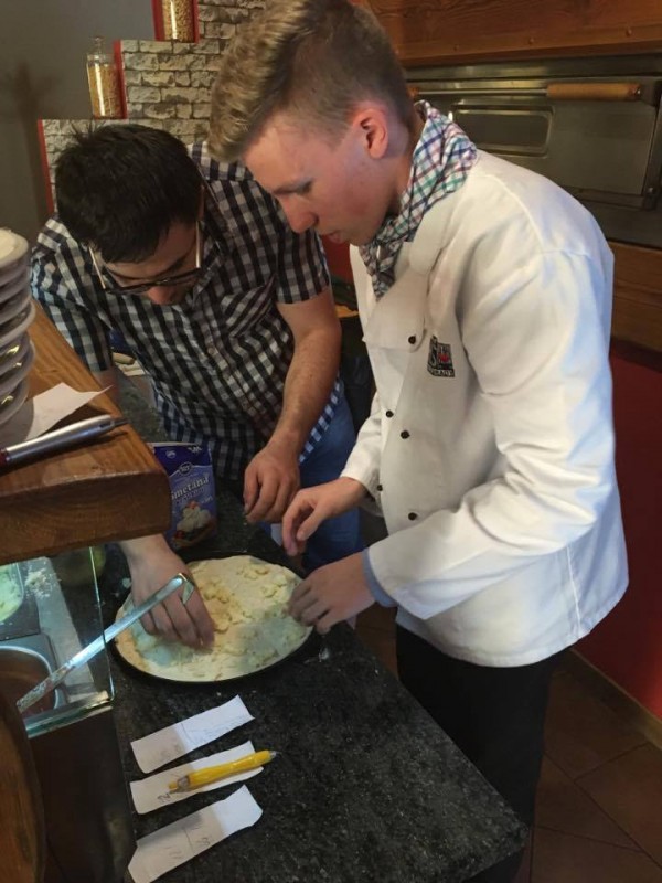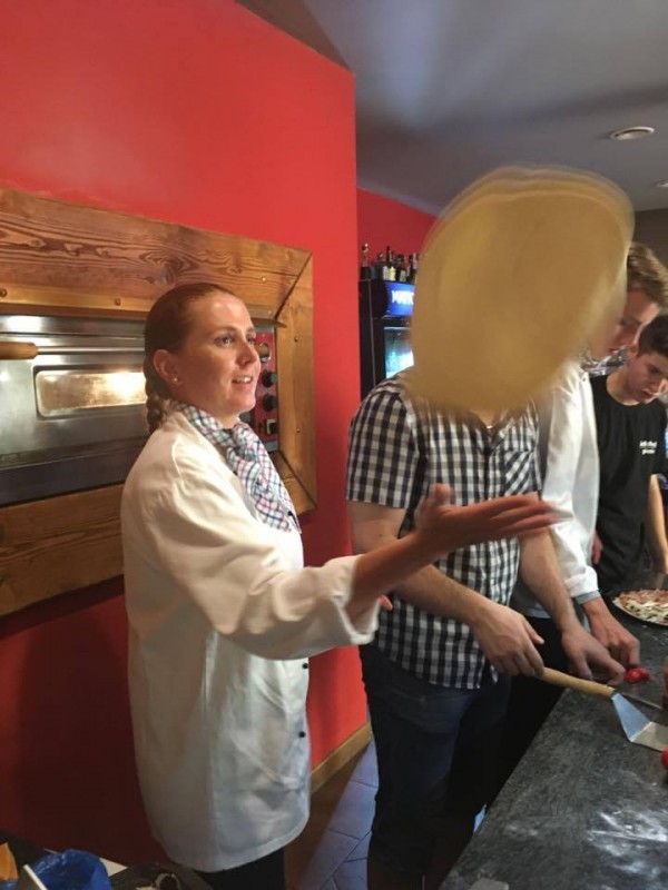 1.A si svou výuku vaření užila tentokrát trochu netradičně. Pizzu jsme se učili připravovat přímo u odborníků – v pizzerii Bello Mondo v Poděbradech na náměstí. Pizzu nás učil dělat pan pizzař – ukázal nám, jak se hází s těstem, jaké ingredience na kterou pizzu patří a jak se peče. Každý z nás si udělal svůj "pizzový výtvor", na kterém jsme si pak za odměnu pochutnali. Jen se podívejte sami, jak nám to šlo.