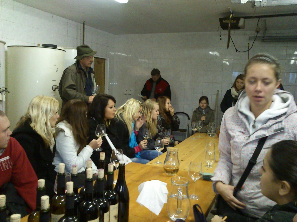 Po 12 hodině jsme dorazili do Velkých Bílovic, kde jsme se po obědě setkali s panem Jaroslavem Osičkou, který nás celou dobu provázel po vinicích, kde jsme si vyslechli nejprve přednášku o pěstování vinné révy a o její historii. Následovala ochutnávka čerstvých vinných hroznů. Poté jsme měli možnost vidět z místní kapličky CHKO Pálavu, městečko Velké Bílovice a především bohaté obrovské vinice, které se po celé krajině rozléhaly. Následně jsme se prošli v části městečka, ve které se nachází snad i stovky rodinných vinných sklípků, kde jsme také navštívili vinný sklípek pana Osičky.
