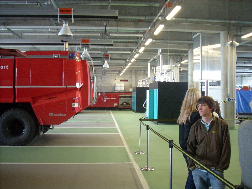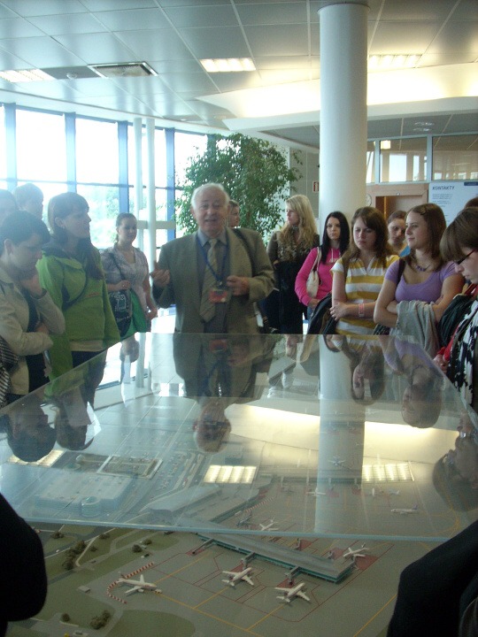 Dne 11. května jsme se třídy 3.B a 3.C vydali pod dozorem paních učitelek Drobné a Valentové na odbornou exkurzi pražského letiště Ruzyně. Prohlídku Terminálu 3 jsme začali úderem desáté hodiny ranní, pod vedením „leteckého profesora“ Kamila Břemka. Tento sympatický pán, nás provedl celou Ruzyní, rozpovídal se o svých zážitcích ze svého mládí, kde všude létal, v kolika letech poprvé usedl za kokpit letadla. Museli jsme pro kontrolu projít bezpečnostním rámem, abychom neměli u sebe předměty, které nejsou v souladu s bezpečnostními předpisy letiště, a také nás seznámil s letištní hasičskou zbrojnici. Požádali jsme hasiče, jestli by nám mohli ukázat sjezd po tyči. Od hasičů jsme odcházeli spokojení, protože nám toto přání splnili. Následující okamžiky jsme strávili příjemnou projížďkou autobusem po dráze. Pan Kamil Břemek nám přesně řekl, jaké letadlo právě přilétá, kolem kterého momentálně projíždíme. Bylo na něm vidět, že má hodně zkušeností, co se týče létání. Loučil se s námi se slovy, že jestli bude mít někdo zájem o místo pilota, může si udělat kurz na motorová letadla, který stojí 60.000 Kč a částka za kurz na dopravní letadlo s částkou 1.500.000 Kč, ovšem bez nároku na vrácení peněz při nesplnění zkoušek. Následující minuty jsme absolvovali pod vedením paní učitelky Drobné, které nás postupně provedla celým letištěm. Nemohli jsme uvěřit, že celková trasa od terminálu 1 do terminálu 2 činí tři kilometry. Proto děkujeme paní učitelce Drobné, že nám umožnila tuto exkurzi, že jsme měli možnost poznat zákoutí letiště, kam se jen tak obyčejný člověk nedostane.