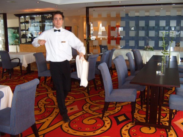 V pondělí následujícího týdne jsme si prohlédli naše pracoviště. Rica Nidelven Hotel je dva roky starý konferenční hotel se spoustou konferenčních místností a působí velice moderně. Hotel je postaven na pilířích 17 metrů nad řekou Nidelv a pouze 2 metry stojí nad zemí. Po prohlídce jsme si užili poslední hodiny volna. A pak to začalo. Přijali nás velice mile, postupně nás manažer odbytového střediska Alex seznámil se všemi členy obsluhy a ukázal, kde a jak budeme pracovat. První týden byl vyloženě seznamovací a personál byl vždy ochotný nám pomoci v nesnázích. Od 4. týdne jsme pracovali odděleně, vždy jsme se střídali. Jeden pracoval na dopolední směně, druhý na odpolední. Večerní směna byla zábavnější, protože mladý kolektiv byl velice vtipný. Užili jsme spoustu legrace jdoucí i na úkor našich spolupracovníků a někdy jsme se jím neubránili ani my. Servírovali jsme pokrmy, objednávali a rozlévali nápoje, prostírali stoly na snídaně, obědy a večeře. Připravovali místnosti pro konference, pomáhali při room service. Při práci v hotelu jsme si procvičili anglický jazyk a naučili se základní norská slovíčka. Seznámili jsme se s novým způsobem nošení talířů, což pro nás, jako studenty hotelové školy, je příjemným poznatkem. Zaměstnanci mají mezi sebou velice dobrý vztah a v hotelu panuje dobrá organizace.