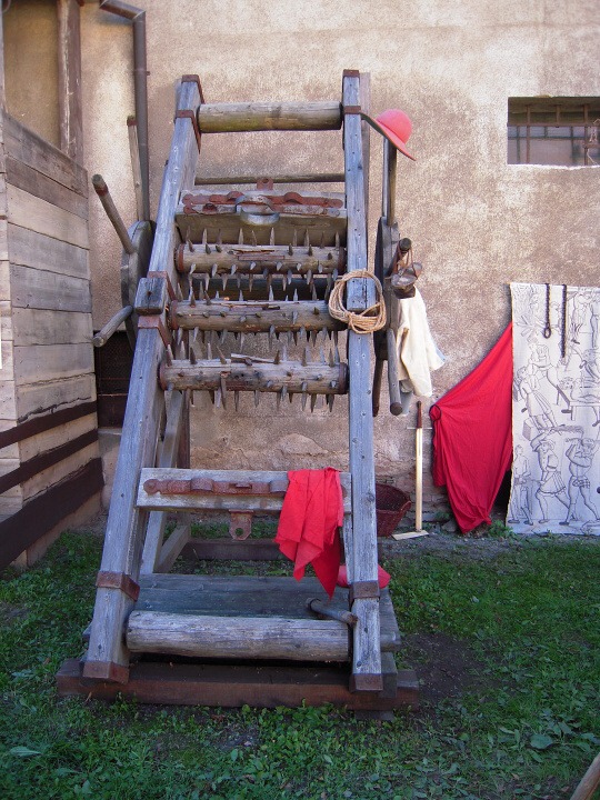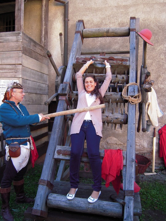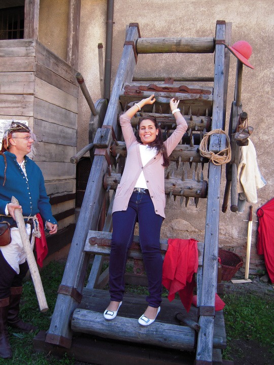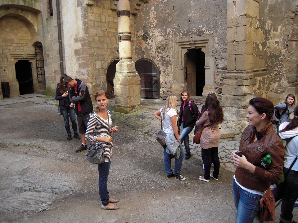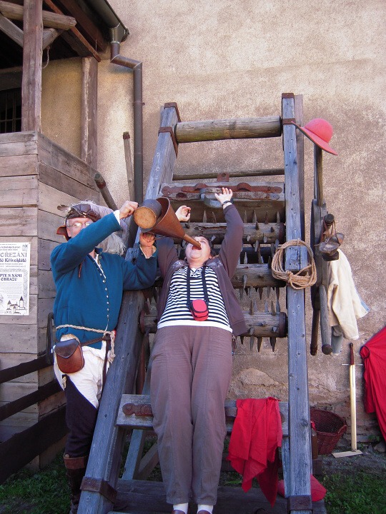 Naší první cílovou destinací byl hrad Křivoklát, kde pro nás byl přichystán bohatý program. Aby byla „dobovost“ úplná, každé skupině bylo přiděleno jméno některého z vládnoucích rodů. My jsme byli Habsburkové a jako první jsme si mohli prohlédnout hrad s paní průvodkyní, jež nám přiblížila nejen jeho historii, ale ukázala i tehdejší vězení a hladomornu, která kdyby byla v dnešní době alespoň z půlky tak drsná jako byla dříve, kriminalita by jistě klesla rychlostí světla.