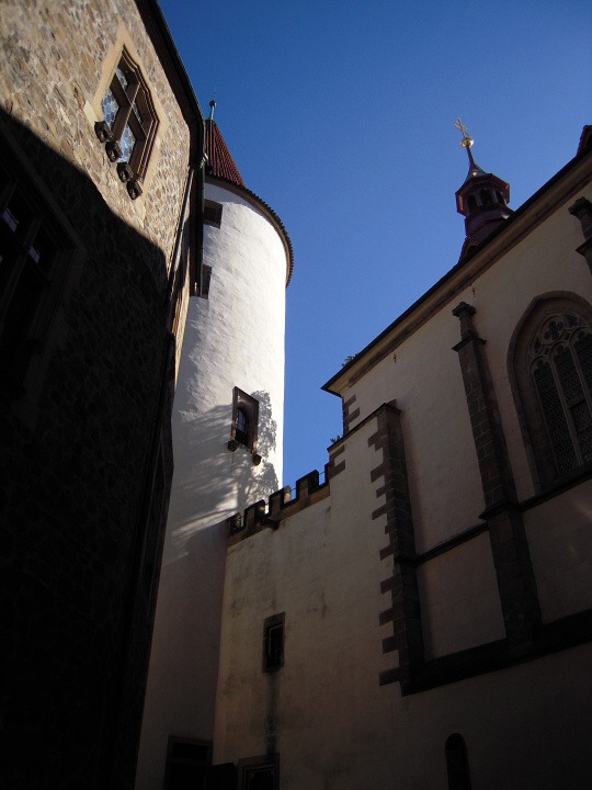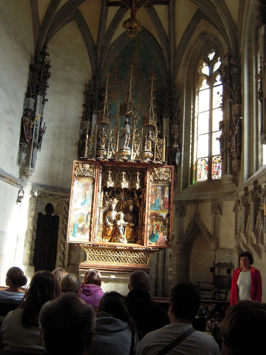 Jelikož už se den blížil ke konci, na nic jsme nečekali a následovali slečnu průvodkyni a bystře poslouchali její záživný výklad zejména o Karlovi IV., jeho dětství, manželkách, sídlech Lucemburků a poté o samotném hradu, který jsme křížem krážem prošli. Jednou z největších atrakcí byla replika korunovačních klenotů, které od originálu pozná jen odborník.