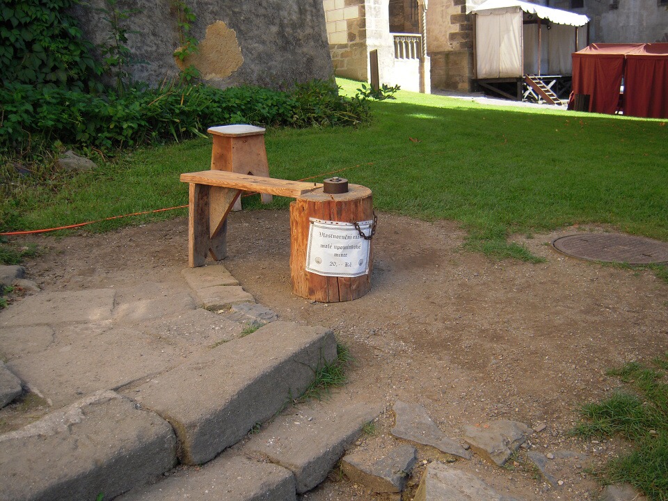 A co takhle poobědvat na hradě? Řekli jsme si: „No komu se asi co poštěstí…“ Ale byli jsme mile překvapeni, když nám byly podávány speciality hradních kuchařů v podobě polévky, hlavního jídla a dezertu. Po dobrém obědě jsme měli možnost vyzkoušet si střelbu z kuše, vyrazit si mince a dozvědět se něco o mučicích nástrojích, které si mohli ti nejodvážnější z nás i vyzkoušet. A kdo že si troufl? Právě naše paní učitelky! Po zábavném programu na Křivoklátě jsme se opět přemístili na tamní nádraží a pokračovali v cestě naším parním vláčkem směr Karlštejn. Každý ví, že tento hrad je opředen mnoha pověstmi, a proto jsme se těšili, že se dozvíme, kolik z nich je pravdivých.