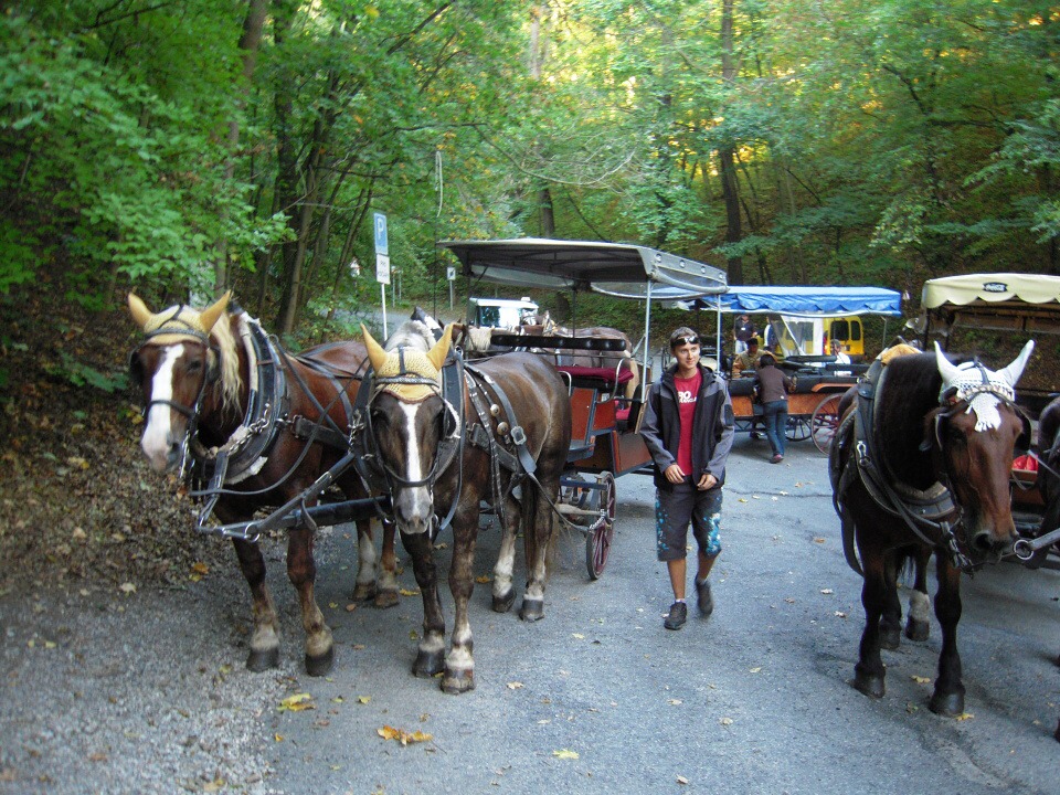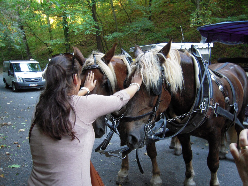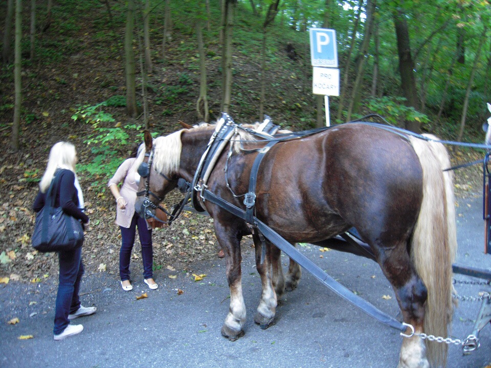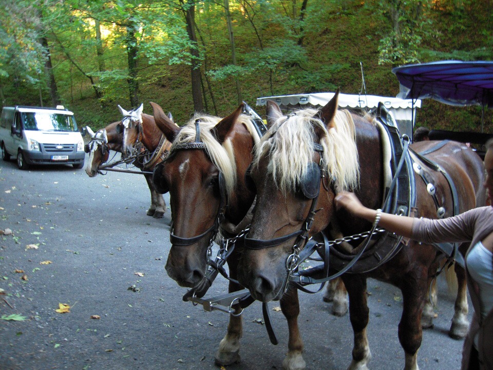Po příjezdu do stanice Karlštejn na nás již čekaly kočáry tažené koňmi, a tak jsme se skoro jako pážata nechali vyvést až na vrchol kopce, k samotnému hradu, který již z dálky majestátně vyhlížel do okolí.