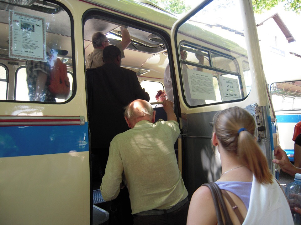Z městského nádraží nás převezl historický autobus do pivovaru. Musíme podotknout, že jízda ve vlečném voze, spolu s poutavým vyprávěním různých historek z jízd „vlečňákem“ v době, kdy naše vypravěčky, paní Eva Karásková a Jaroslava Kynclová, byly také školou povinné, byly opravdovým zážitkem.