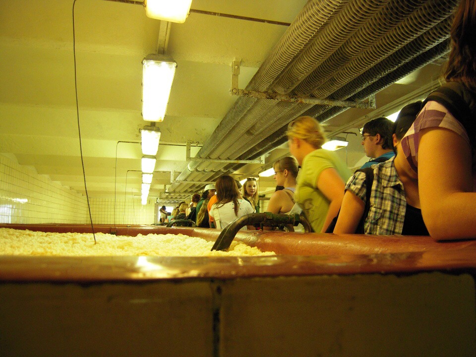 Následovala prohlídka pivovaru s návštěvou sladovny, kde jsme měli možnost ochutnat zatím jen naklíčený ječmen, tzv. pukavku. Ovšem finální produkt by byl určitě chutnější, ale na ten jsme si museli počkat.