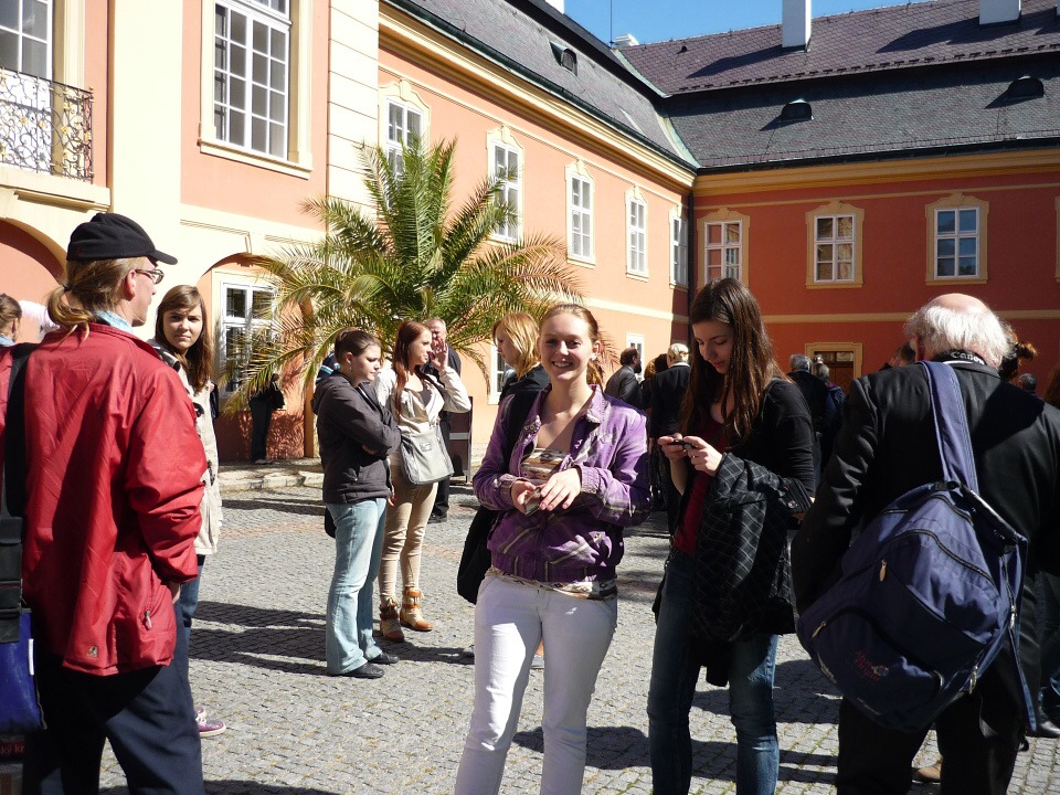 První zastávka byla ve Vraném nad Vltavou, kde proběhl odborný seminář na téma „Pára“. Dozvěděli jsme se řadu zajímavostí o využití páry v dopravě a to nejen železniční, ale i vodní. Po malém občerstvení přímo v salónním voze historického vlaku jsme pokračovali do stanice Dobříš, kde na nás čekaly nablýskané historické automobily. Ty nás dopravily k zámku, kde byl pro nás připraven bohatý program, včetně jeho prohlídky, oběda v Zrcadlovém sále a zejména orientačního běhu o ceny pro studenty. Čtrnáct úkolů a otázek z historie i současnosti zámku, Dobříše a Vraného nad Vltavou nejlépe zvládlo družstvo z naší „hotelovky“.